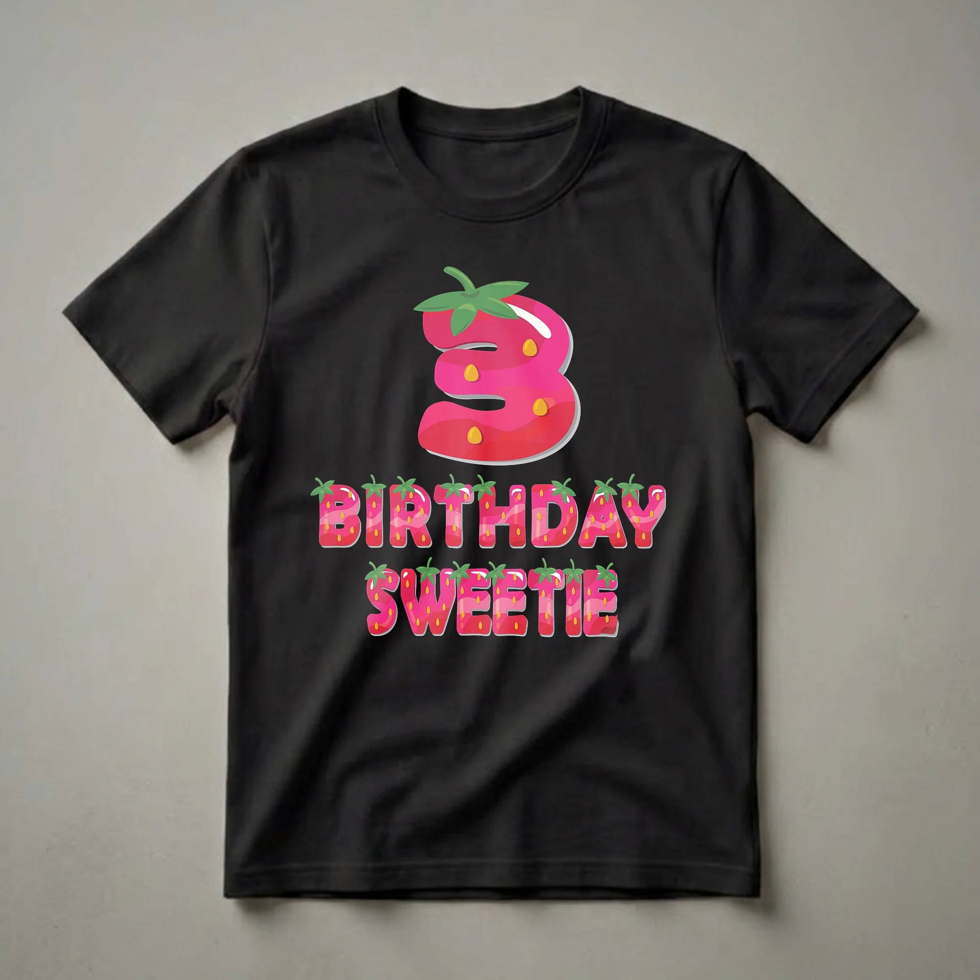 - She'll shine at her 3rd birthday party in this 'Birthday Sweetie' strawberry tee.
