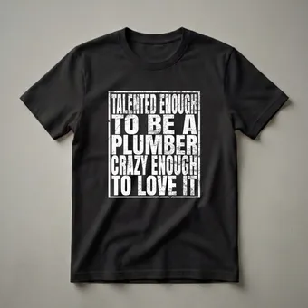 Plumbers are the backbone of modern infrastructure, ensuring that water flows where it should and waste is removed efficiently. This graphic tee celebrates the dedication and skill required for this essential trade. The bold white lettering, set against a stark black background within a distressed white border, clearly states, "TALENTED ENOUGH TO BE A PLUMBER CRAZY ENOUGH TO LOVE IT." This shirt is a testament to the plumbers who possess the technical expertise to tackle complex pipe systems and the passion to truly enjoy their challenging work. It speaks to the unique blend of problem-solving and hands-on labor that defines the plumbing profession. This t-shirt works well for plumbers who take pride in their craft and aren't afraid to show it. It makes a thoughtful gift for the plumber in your life, whether it's for a birthday, holiday, or just to show appreciation for their hard work. Imagine them wearing this tee on a casual Friday at the shop or while relaxing after a long day of fixing leaks and installing fixtures. It’s a comfortable and stylish way for any plumber to express their commitment to their trade.