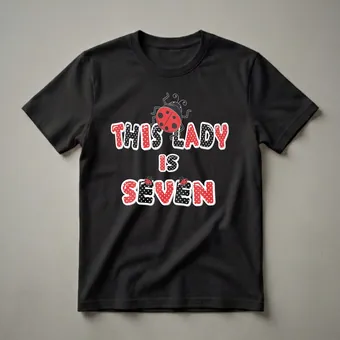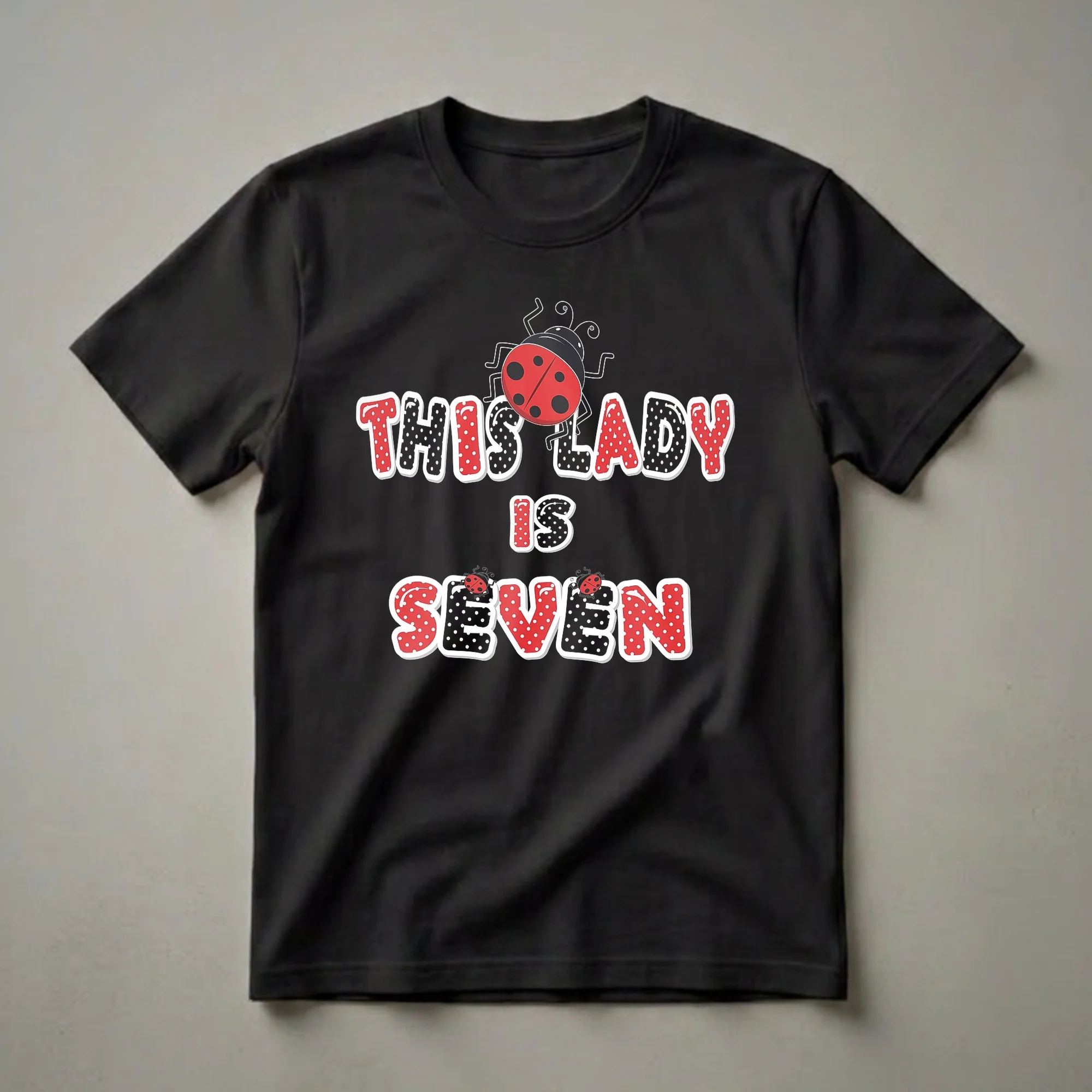 - This "This Lady Is Seven" ladybug tee celebrates a 7-year-old's special day with a charming polka dot design.
