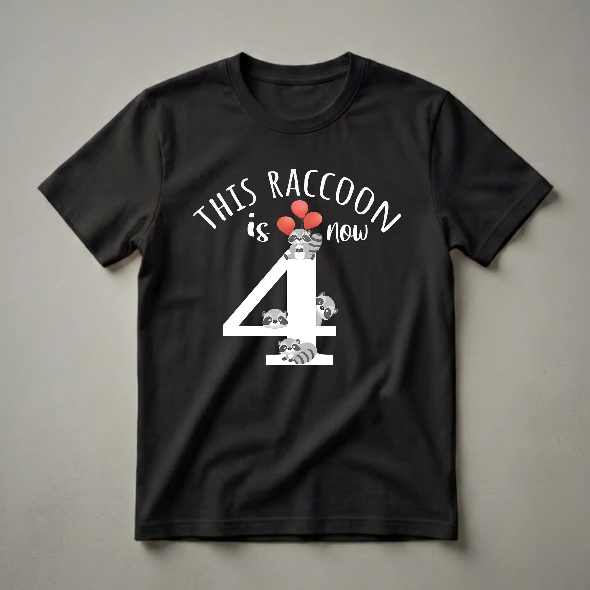 Hover to zoom · tap to expand This Raccoon Is Now 4 Years Old Birthday T-Shirt for 4-Year-Olds