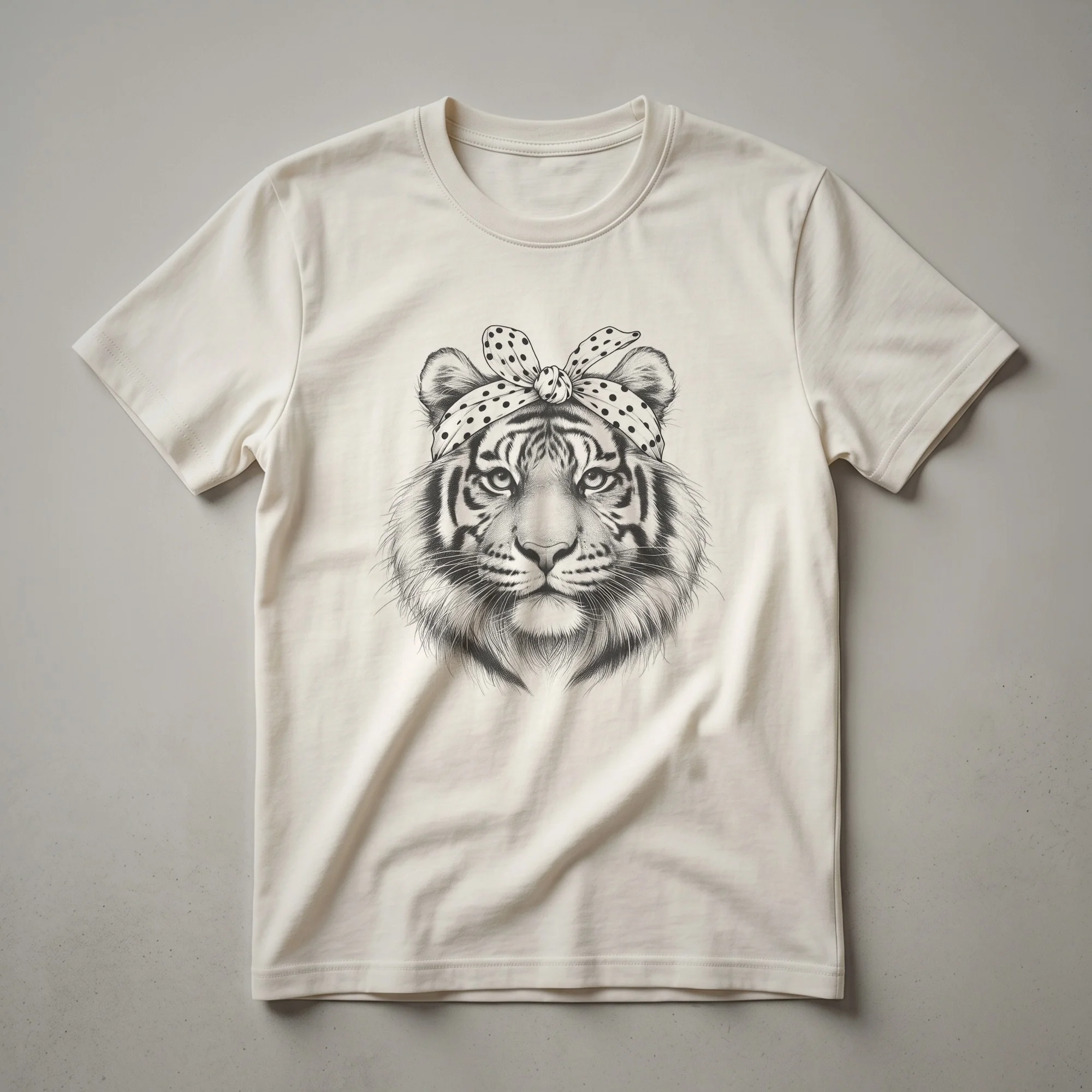 - Features a vintage distressed tiger face with floral accents.