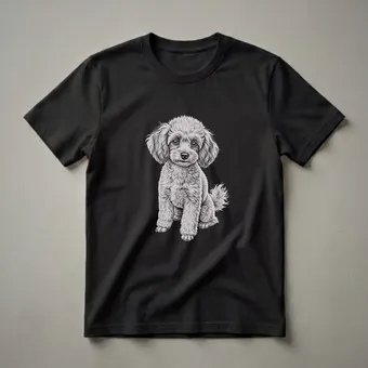 Toy Poodle owners who appreciate the breed's intelligence and playful nature will reach for this unique graphic tee. The design features a meticulously rendered pencil sketch of a toy poodle, capturing its characteristic curly fur and endearing expression. Poodles, originally bred in Germany as water retrievers, are known for their hypoallergenic coats and high trainability, making them a popular companion animal worldwide. This shirt is a thoughtful gift for any dog mom, dog dad, or anyone who cherishes their canine companion. It's a staple in the collection for those who love dogs and appreciate detailed, artistic renditions of their favorite breeds. Wear this t-shirt to your next dog park visit or casual outing to spark conversations with fellow dog enthusiasts. The intricate drawing style evokes a vintage feel, making it a standout piece for any animal lover's wardrobe. This apparel is a wonderful way to express your affection for these charming dogs.