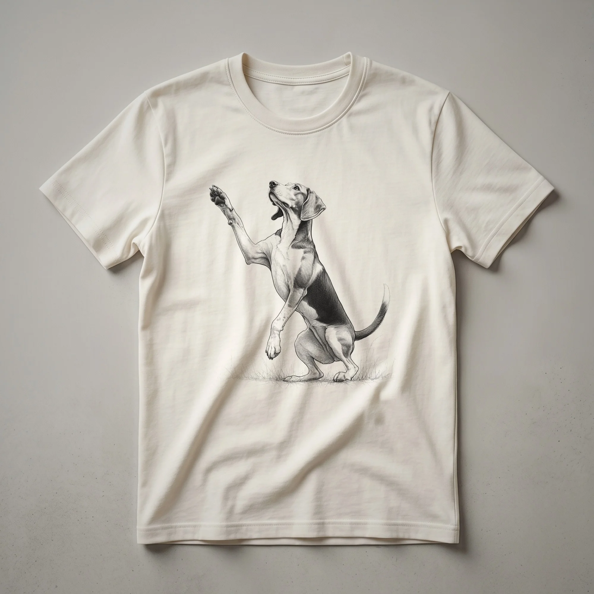Treeing Walker Coonhound owners know the breed's energetic spirit and distinctive baying vocalizations, often used during hunts. This graphic t-shirt features a stylized illustration of a Treeing Walker Coonhound, depicted with one paw raised in a charming pose. The design is rendered in a clean, line-art style, making it an eye-catching addition to any dog lover's wardrobe. Treeing Walker Coonhounds are known for their intelligence and friendly nature, making them beloved companions. This shirt is a wonderful way for any proud owner to express their affection for their canine friend. It makes a thoughtful gift for the dog mom or dad who cherishes their Treeing Walker Coonhound. Wear this comfortable tee to your next dog park visit or casual outing to spark conversations with fellow dog enthusiasts. This unique dog shirt is a staple for any dedicated fan of the breed.
