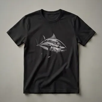 Anglers and marine life enthusiasts will appreciate the detailed artistry of this tuna fish graphic tee. The design features a realistic, monochromatic drawing of a powerful tuna, rendered with striking detail that captures its sleek, muscular form. Tuna are known for their incredible speed and endurance, making them a prized catch for sport fishermen. These migratory fish inhabit temperate and tropical oceans worldwide, often traveling vast distances in large schools. This shirt is a thoughtful gift for the fisherman in your life or anyone who admires the beauty and power of ocean predators. Wear this t-shirt on your next fishing trip or to casual outings to display your connection to the sea. It's a staple in the collection for those who love the thrill of the catch and the majesty of marine wildlife.