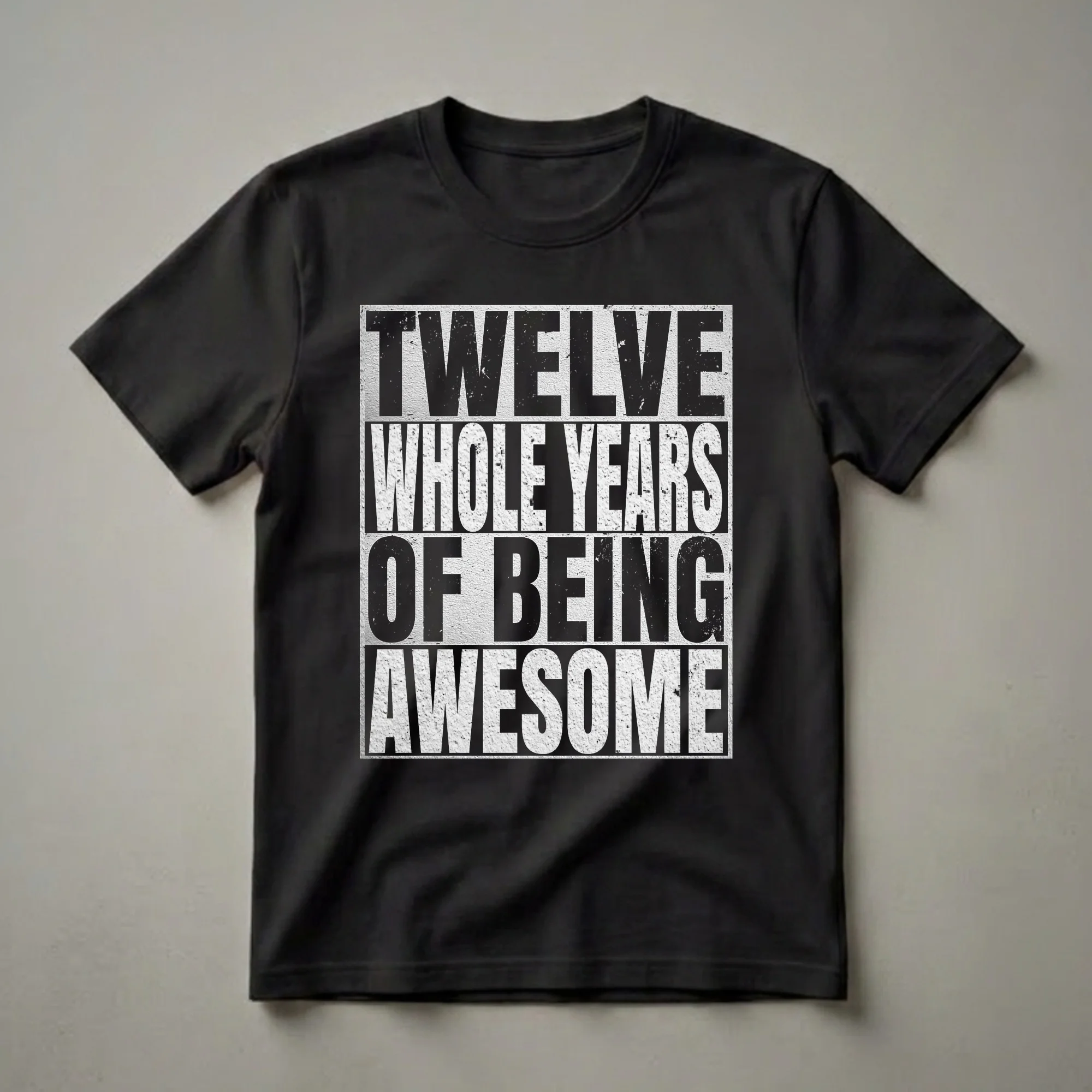 - Features bold, distressed text that reads 'Twelve Whole Years Of Being 12'.
