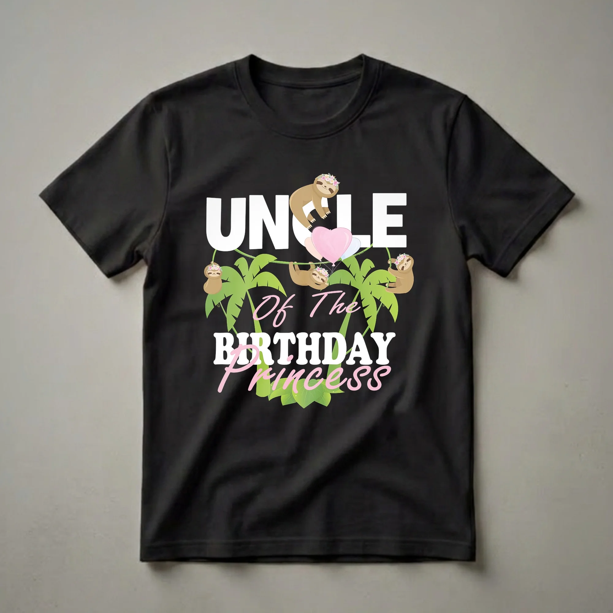 - Uncle of the Birthday Princess featuring a super cute sloth graphic.
