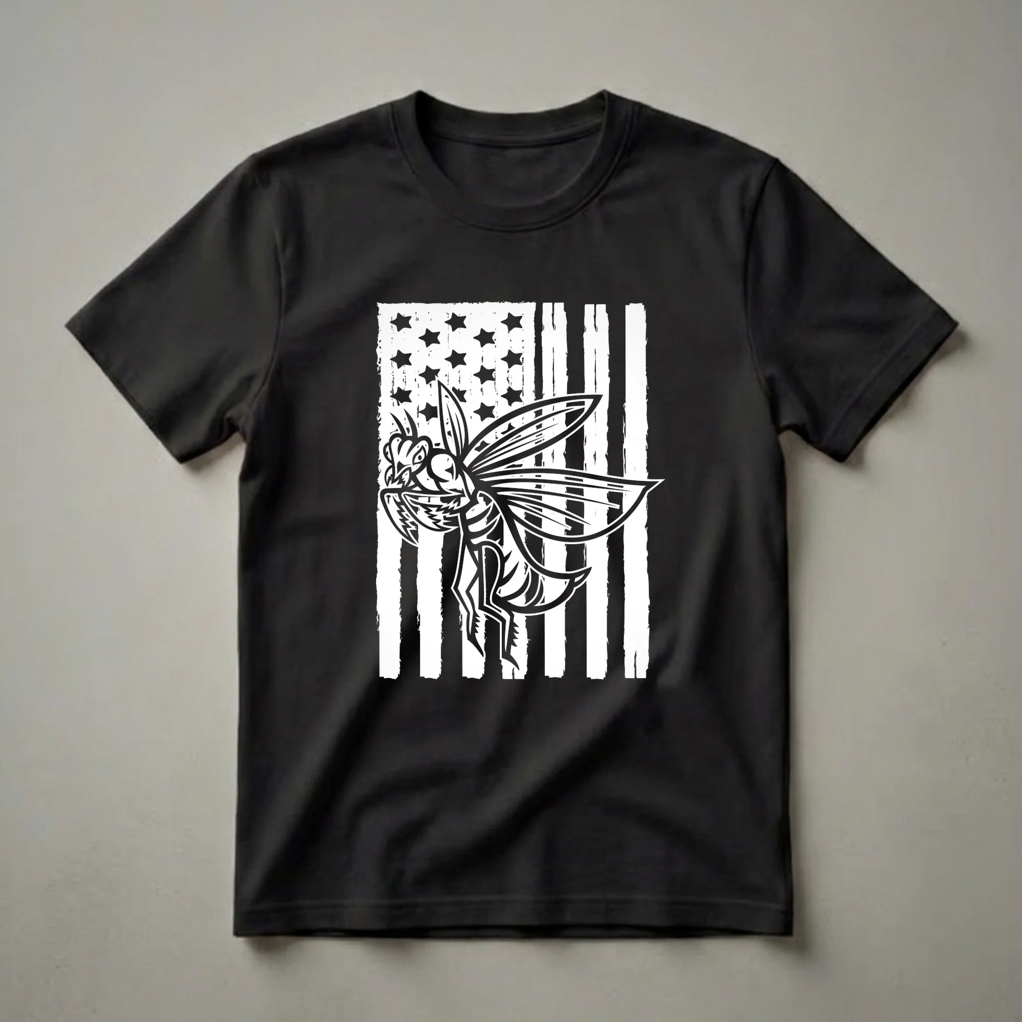 - Celebrate your passion for praying mantises and American pride with this unique graphic t-shirt.