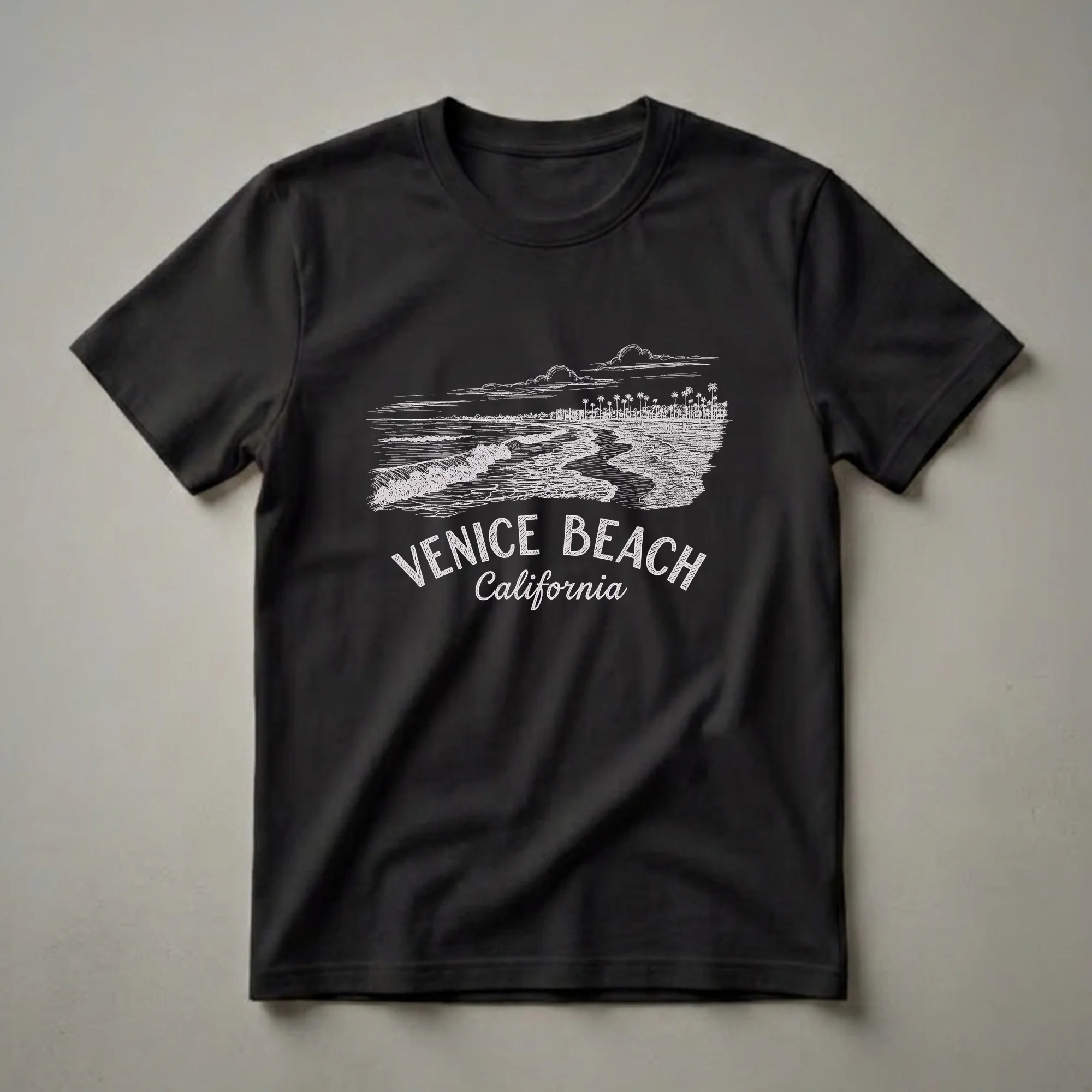 - Venice Beach California sketch design t-shirt for beach lovers.