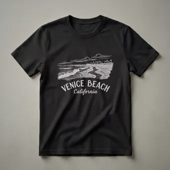 - This Venice Beach graphic tee captures the iconic California coastline and palm trees.