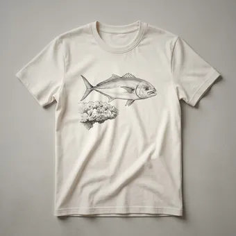 Marine life enthusiasts and anglers will appreciate the detailed, vintage-style illustration of an amberjack fish featured on this unique t-shirt. The artwork captures the distinctive elongated body and powerful fins of the greater amberjack (Seriola dumerili), a popular game fish known for its speed and strength in offshore waters. These fish are commonly found in tropical and subtropical regions worldwide, often near reefs and wrecks, making them a sought-after catch for sport fishermen. This graphic tee is a thoughtful gift for anyone who enjoys deep-sea fishing, marine biology, or simply appreciates the beauty of ocean creatures. The retro drawing style evokes a classic feel, reminiscent of old-school fishing guides or scientific illustrations. Wear this shirt on your next fishing trip, to a casual outing with friends, or while exploring coastal areas. It's a comfortable and stylish way to express your passion for the aquatic world and the thrill of the catch. This apparel serves as a conversation starter for fellow fish lovers and a reminder of the vibrant underwater ecosystems.