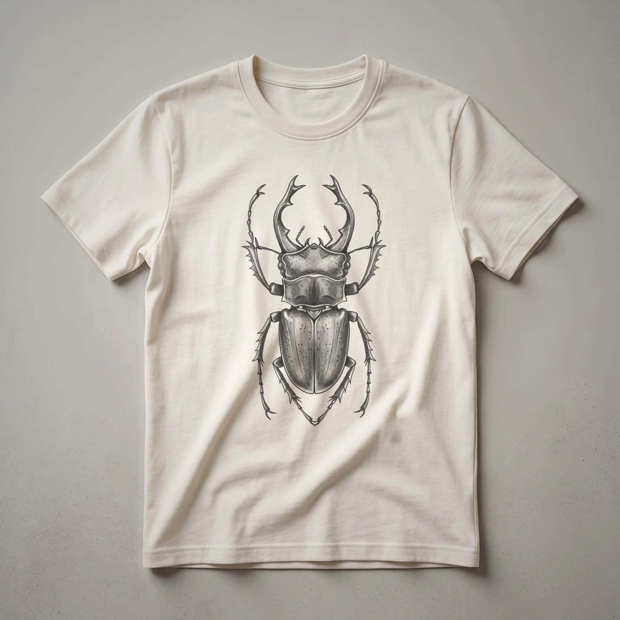 Entomology enthusiasts and nature lovers will appreciate this striking t-shirt featuring a detailed, hand-drawn illustration of a beetle. The vintage art style evokes a classic scientific illustration, bringing a touch of natural history to your wardrobe. Beetles, belonging to the order Coleoptera, represent the largest group of insects on Earth, with over 400,000 described species found in nearly every habitat. This graphic tee is a thoughtful gift for anyone fascinated by the intricate world of insects, from entomologists to casual admirers of the natural world. Wear this shirt on your next hike, to a nature documentary screening, or simply when you want to express your appreciation for the diverse insect kingdom. It's a unique way for bug collectors and wildlife enthusiasts to showcase their passion. This comfortable shirt makes a thoughtful gift for the nature lover in your life who appreciates detailed, artistic representations of the natural world.