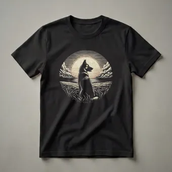 Belgian Malinois owners who appreciate the breed's intelligence and working drive will reach for this striking graphic tee. The design captures a Belgian Malinois dog sitting serenely in a field of tall grass, gazing towards a vintage-inspired sunset. The scene is rendered in a classic woodcut or linocut style, with bold lines and a limited color palette that evokes a sense of nostalgia and timeless appeal. The sun, partially obscured by stylized clouds, casts a warm glow across the horizon, reflected in the calm water beyond the field. This shirt is a thoughtful gift for any Belgian Malinois enthusiast, whether they are active in dog sports, work as a handler, or simply cherish their loyal companion. The Belgian Malinois, originally from Belgium, is renowned for its versatility and is often used as a police or military dog due to its courage and trainability. This t-shirt is a thoughtful choice for casual outings, dog park visits, or simply relaxing at home with your canine friend. It's a staple in the collection for anyone who admires this noble breed.