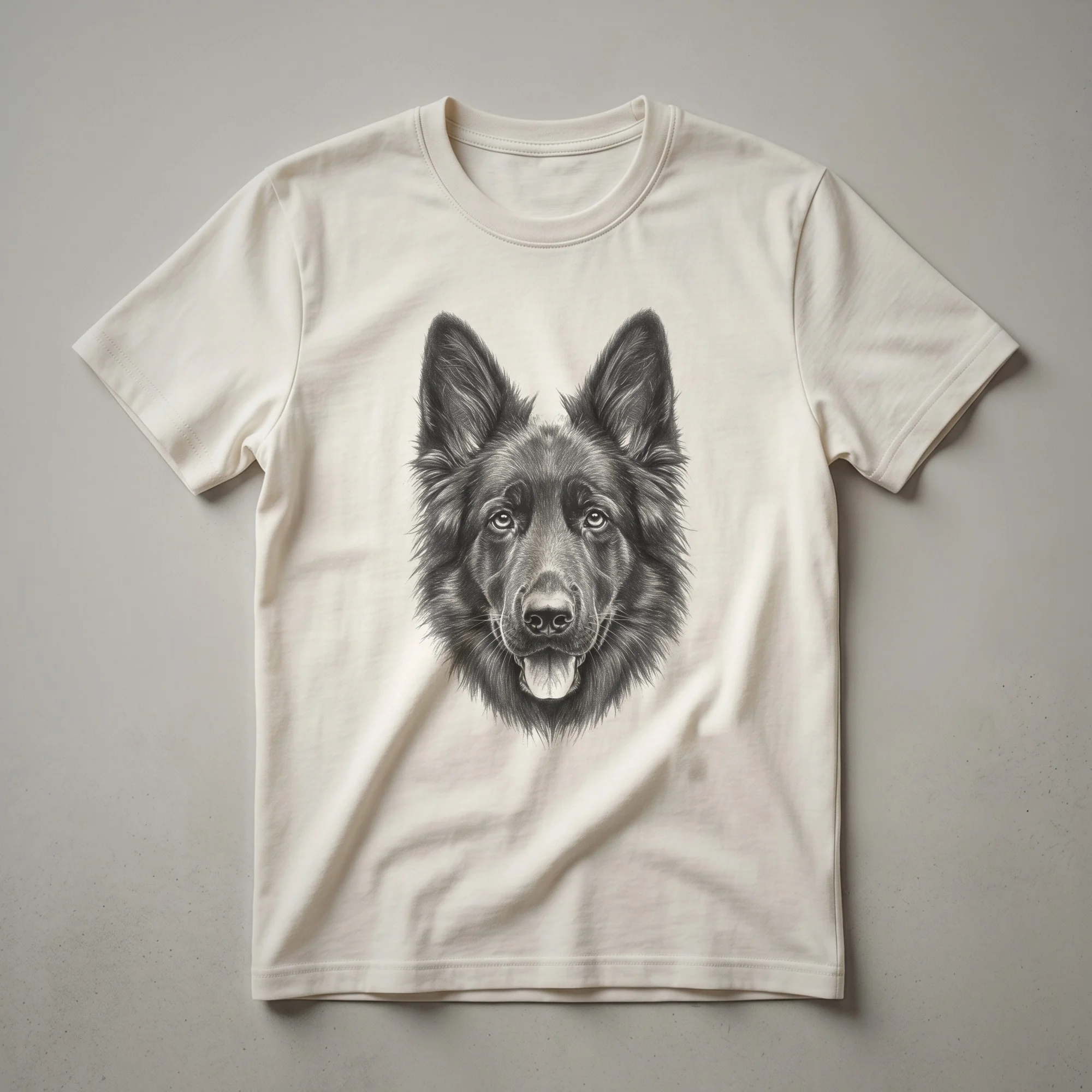 German Shepherd owners who appreciate classic artistry will reach for this unique t-shirt. The design features a striking, hand-drawn sketch of a German Shepherd's face in black and white, evoking a vintage aesthetic. German Shepherds, known for their intelligence and loyalty, originated in Germany in the late 19th century and are widely recognized for their use as working dogs in various capacities, including police and military roles. This graphic tee captures the noble expression of the breed, making it a standout piece for any dog enthusiast. It's a thoughtful gift for the German Shepherd mom or dad in your life, a thoughtful choice for casual outings, dog park visits, or simply relaxing at home. Wear this shirt to express your admiration for this magnificent breed.