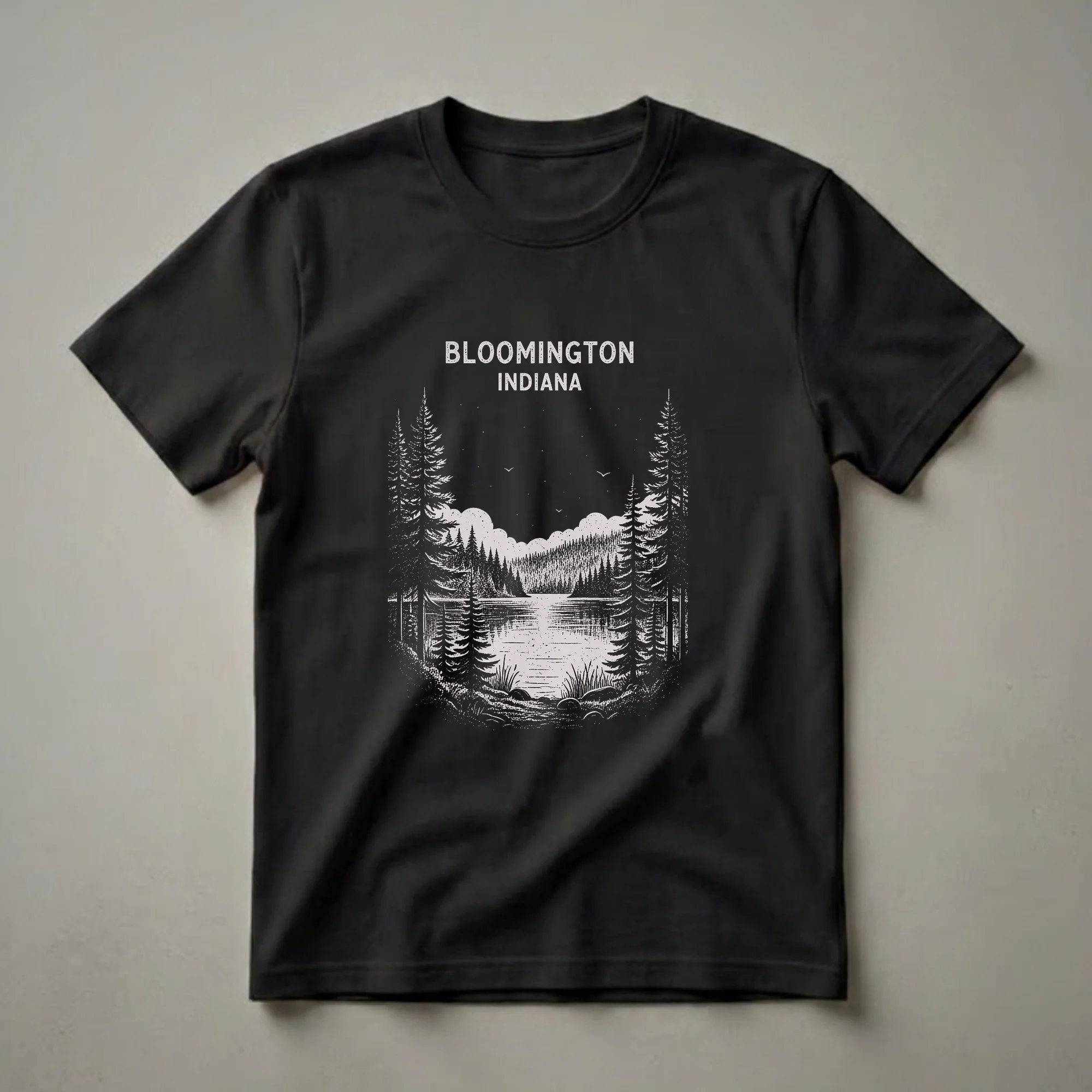 - A nature-inspired Bloomington, Indiana graphic tee for casual enjoyment and local pride.