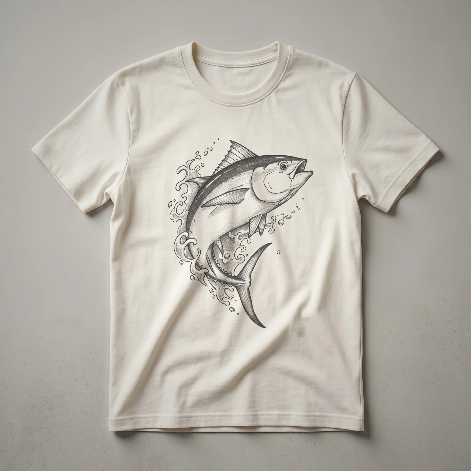 Anglers and marine life enthusiasts will appreciate the detailed artistry of this vintage Bluefin Tuna t-shirt. The design features a striking, hand-drawn illustration of a Bluefin tuna, captured in profile with a classic, retro aesthetic. This powerful fish, known for its speed and strength, is depicted with subtle shading that gives it a timeless, almost antique feel. Bluefin tuna are apex predators found in temperate waters of the Atlantic, Pacific, and Indian Oceans, often migrating vast distances. They are highly prized by sport fishermen for their challenging fight. This graphic tee is a staple for anyone who loves the sea, fishing, or appreciates vintage marine art. It makes a thoughtful gift for the fisherman in your life or for someone who simply admires these magnificent creatures. Wear this shirt on your next fishing trip, to a casual outing, or while exploring coastal towns. This apparel is a true conversation starter.