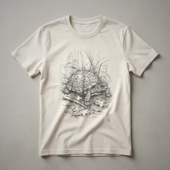 - Features a detailed, vintage hand-drawn illustration of a box turtle.