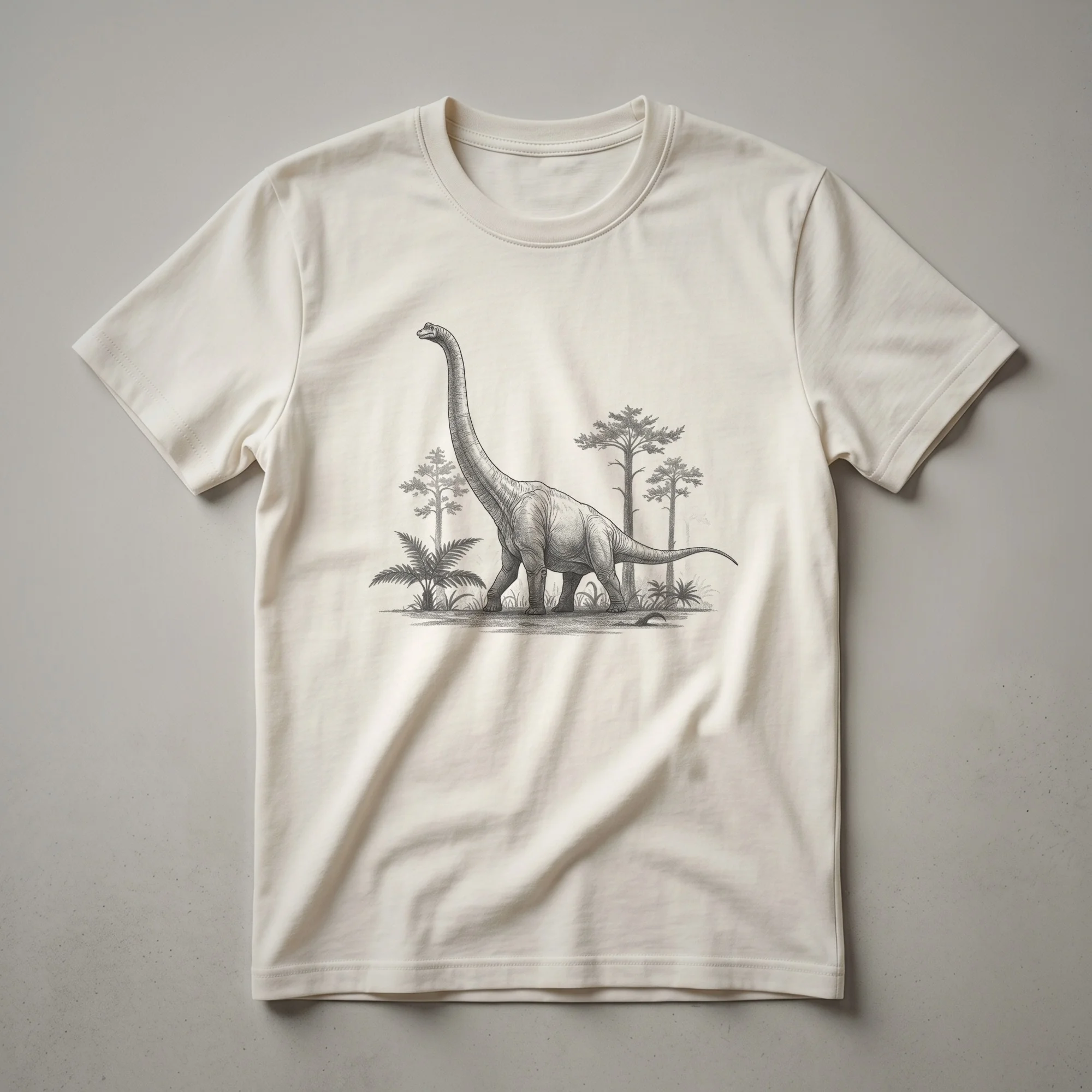 Paleontology enthusiasts and dinosaur lovers will appreciate this unique Brachiosaurus t-shirt, featuring a striking hand-drawn illustration. The Brachiosaurus, known for its long neck and tail, was a herbivorous dinosaur that roamed the Earth during the Late Jurassic period, approximately 155 to 150 million years ago. These magnificent creatures are believed to have inhabited areas that are now North America. This graphic tee captures the essence of these ancient giants with a vintage aesthetic, making it a standout piece for anyone fascinated by the Mesozoic Era. This shirt is a thoughtful gift for the dinosaur aficionado in your life, whether they are a student of ancient life or simply enjoy the awe-inspiring nature of dinosaurs. Wear this t-shirt to a museum exhibit, a casual outing, or while discussing your favorite prehistoric facts. It's a comfortable and stylish way to express your passion for these incredible creatures from the past. This Brachiosaurus shirt is a staple for any collection celebrating Earth's ancient history.