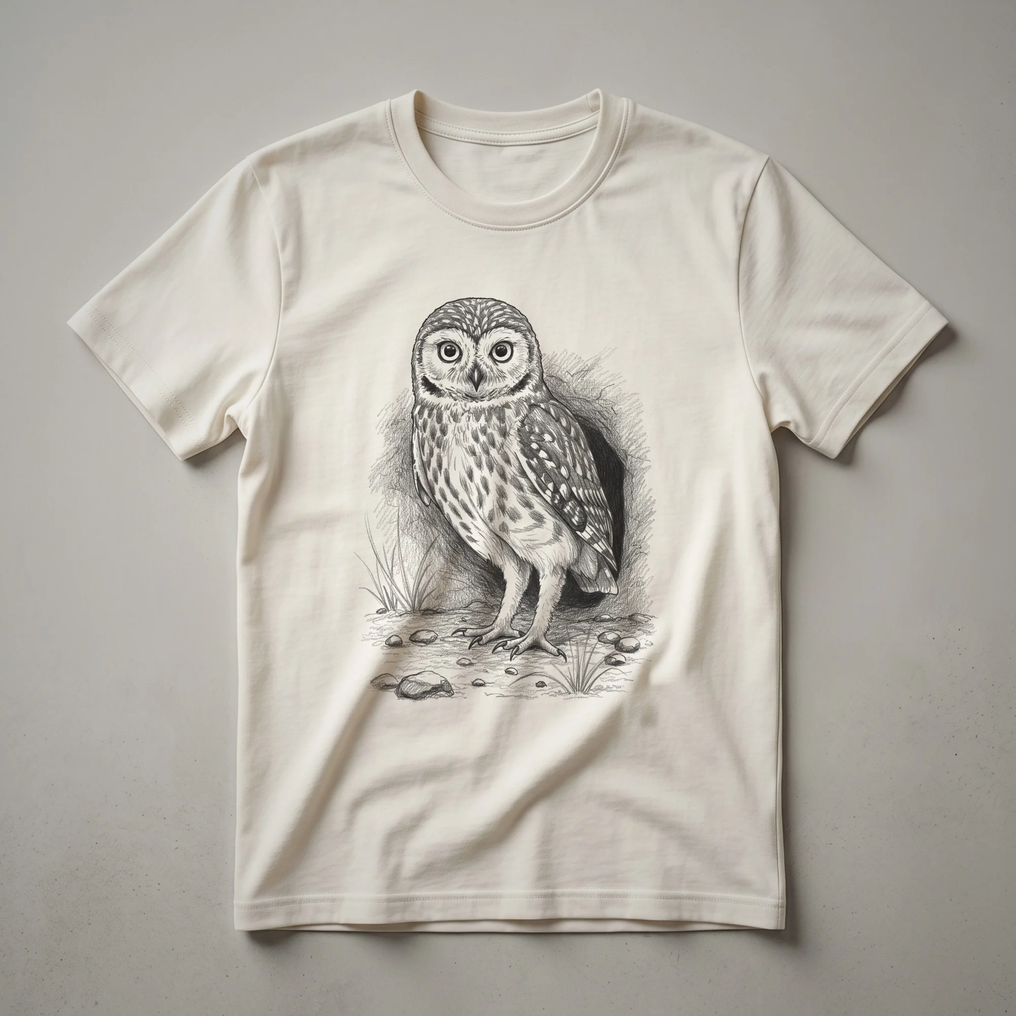 - This t-shirt showcases a meticulously hand-drawn vintage burrowing owl, a nod to nature's artistry.