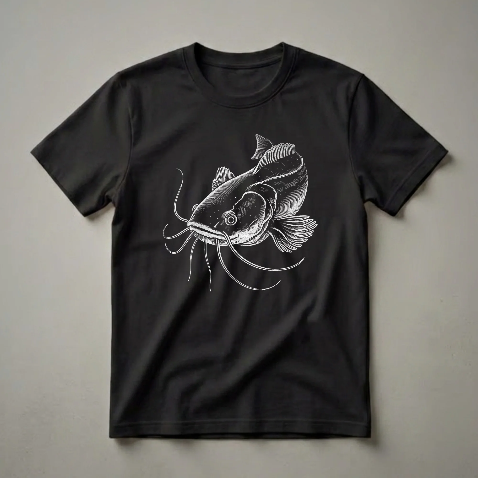 Anglers and marine life enthusiasts will appreciate the intricate detail of this vintage-style catfish graphic tee. The artwork features a striking, black and white depiction of a catfish, rendered with fine line work that evokes classic scientific illustrations. This shirt is a thoughtful gift for anyone who enjoys freshwater fishing or has a fascination with these unique bottom-dwelling fish. Catfish are known for their barbels, often called 'whiskers,' which they use to sense their environment and locate food in murky waters. They inhabit a wide range of freshwater environments, from rivers and lakes to ponds, and are a popular catch for sport fishermen. This t-shirt works well for casual outings, fishing trips, or as a conversation starter among fellow enthusiasts. It’s a staple in the collection for those who appreciate detailed wildlife art and the thrill of the catch. Wear this tee to your next fishing excursion or to a casual gathering and let your passion for the aquatic world shine.