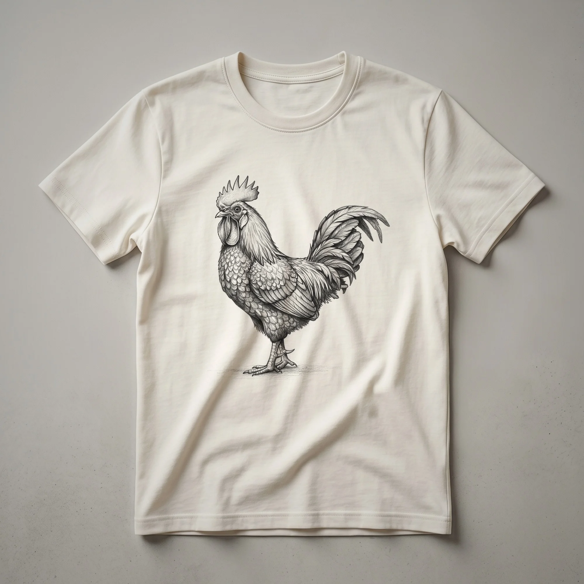 Poultry enthusiasts and lovers of vintage farm art will appreciate this unique chicken sketch t-shirt. The design features a detailed black and white illustration of a chicken, rendered in a classic sketch style that evokes a sense of rustic charm and timeless appeal. Chickens, known for their social behavior and varied breeds, are a common sight on farms and in backyards, symbolizing a connection to nature and a simpler way of life. This graphic tee is a thoughtful gift for anyone who raises chickens, enjoys birdwatching, or simply admires the aesthetic of vintage wildlife drawings. It's a versatile piece of apparel that can be worn to casual gatherings, farm visits, or simply while relaxing at home. The detailed artwork makes this shirt a conversation starter for fellow bird enthusiasts. This t-shirt is a staple for those who want to express their passion for these fascinating birds through their wardrobe. Whether you're a seasoned chicken keeper or admire them from afar, this shirt offers a stylish way to celebrate your interest.