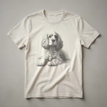 Cocker Spaniel owners who appreciate classic canine artistry will reach for this unique graphic tee. The design features a detailed black and white line drawing of a Cocker Spaniel's head, capturing the breed's distinctive floppy ears and expressive eyes. This artistic representation evokes a sense of nostalgia and timeless appeal, making it a standout piece for any dog enthusiast. Cocker Spaniels, known for their merry disposition and gentle nature, were originally bred in England for flushing woodcock game birds, hence their name. This shirt is a thoughtful gift for the Cocker Spaniel mom or dad in your life, or for anyone who admires the breed's elegant appearance. Wear this comfortable t-shirt to your next dog park visit, a casual outing with friends, or simply while relaxing at home with your beloved canine companion. It’s a subtle yet striking way to celebrate your connection with these wonderful dogs. This apparel is a staple for those who want to display their affection for their four-legged family members with a touch of vintage charm.