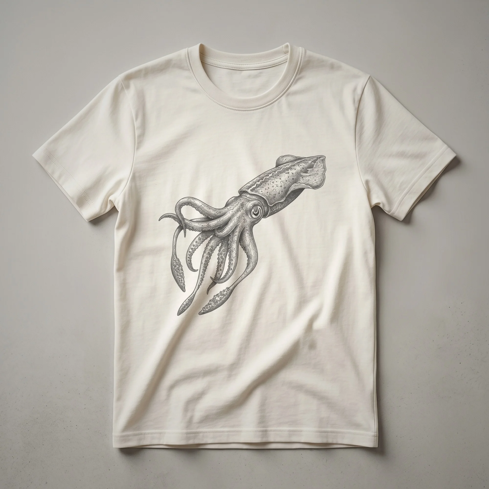 Marine life enthusiasts will appreciate this striking graphic tee featuring a detailed vintage drawing of a colossal squid. This cephalopod, known for its immense size and elusive nature, inhabits the deep oceans worldwide. The intricate line art captures the creature's numerous tentacles and its powerful, mysterious presence. This shirt is a thoughtful gift for anyone fascinated by the ocean's mysteries, from marine biologists to amateur divers. It's a staple in the collection for those who admire the wonders of the deep sea. Wear this t-shirt to your next aquarium visit or while exploring coastal areas, sparking conversations about the incredible biodiversity beneath the waves. The colossal squid (Mesonychoteuthis hamiltoni) is the largest known invertebrate by mass, a true giant of the abyss. This unique apparel allows you to carry a piece of the ocean's grandeur with you, making it a go-to tee for casual outings or themed events. It's a conversation starter for anyone who loves marine biology or the enigmatic creatures of the deep.