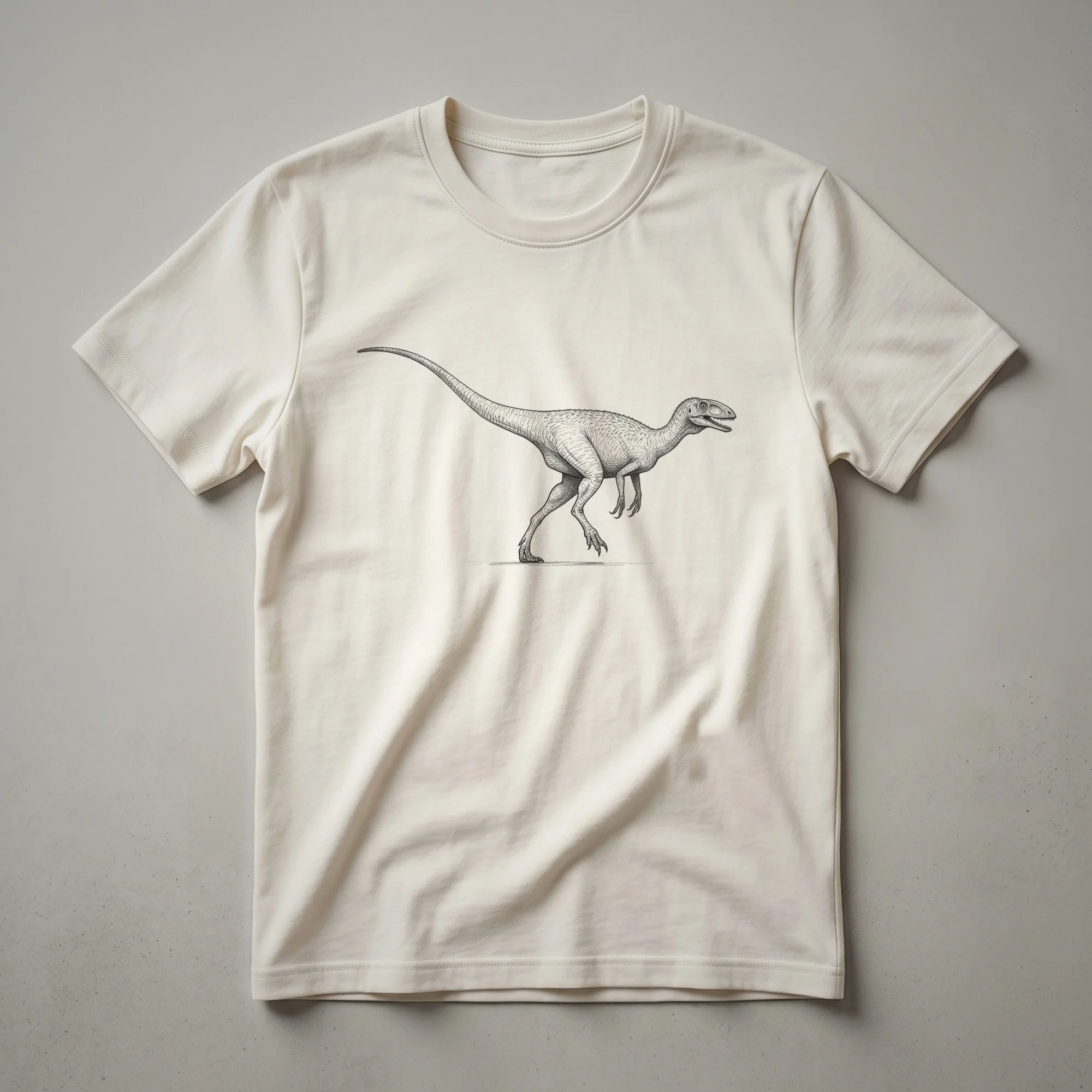 - Compsognathus dinosaur drawing art tee for paleontology fans.