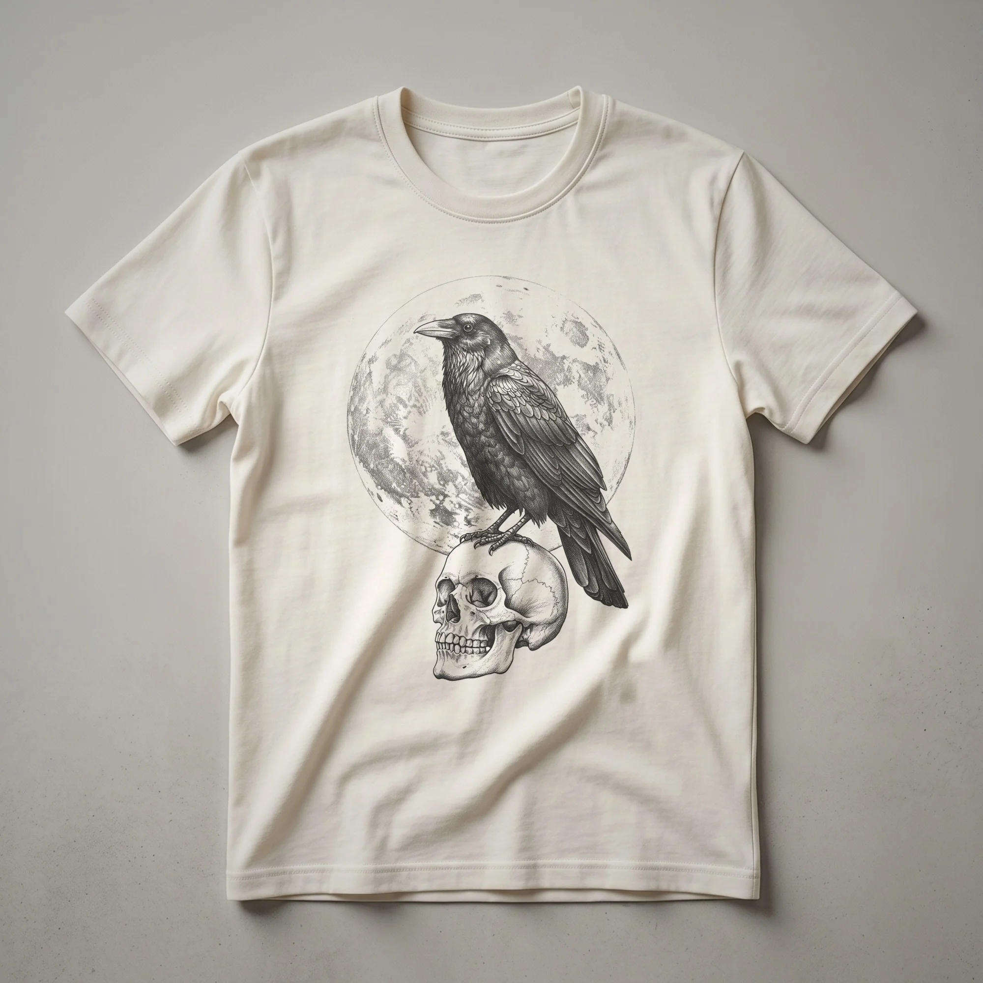 - Adorn yourself with this vintage crow on skull art, a striking gothic nature design.