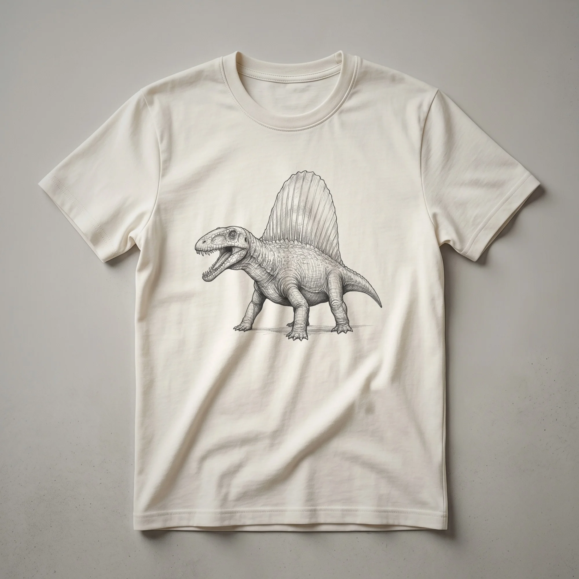 - Vintage Dimetrodon drawing t-shirt for paleontology enthusiasts.