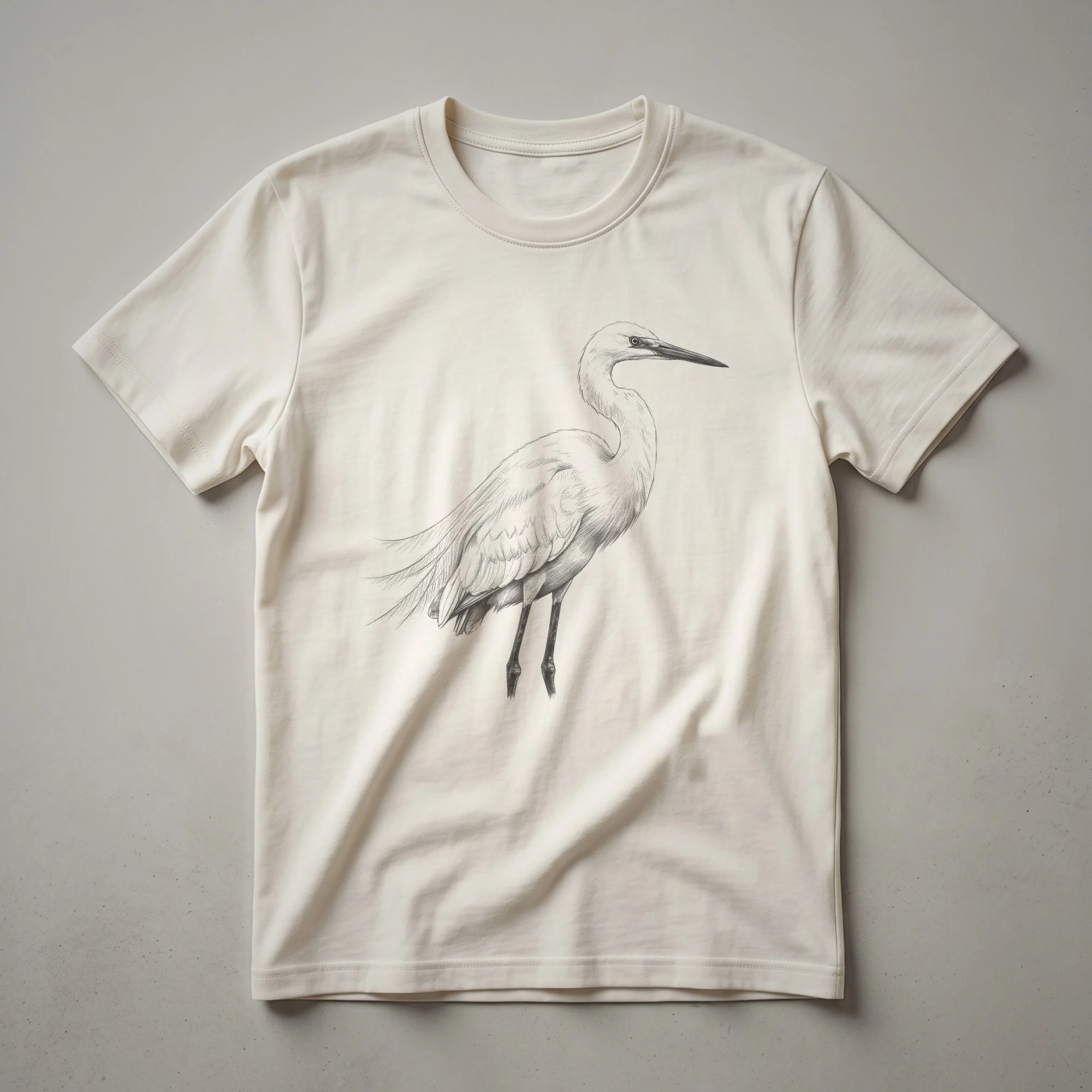 - Celebrate avian elegance with this vintage egret sketch art tee, a tribute to nature's grace.