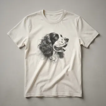 - A distinctive graphic tee celebrating English Springer Spaniels for admirers of classic canine illustrations.
