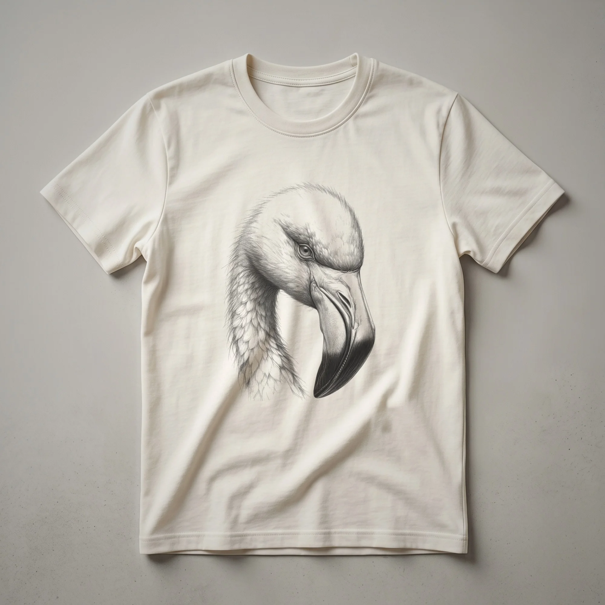 Flamingo enthusiasts will appreciate the delicate artistry of this vintage-style flamingo face drawing t-shirt. The design features a single flamingo's head rendered in a classic line-art style, evoking a sense of nostalgia and timeless elegance. Flamingos, known for their vibrant pink plumage and distinctive curved beaks, are social birds often found in large flocks in shallow lakes and coastal lagoons across Africa, Asia, the Americas, and Europe. This graphic tee captures the graceful profile of the bird, making it a striking addition to any nature lover's wardrobe. It's a thoughtful gift for anyone who admires these unique wading birds or enjoys vintage wildlife illustrations. Wear this comfortable shirt to your next bird-watching excursion, a casual outing with friends, or simply while relaxing at home, celebrating your passion for avian beauty. This t-shirt is a conversation starter for those who love wildlife and artistic representations of nature. This apparel is a go-to tee for any bird watcher.