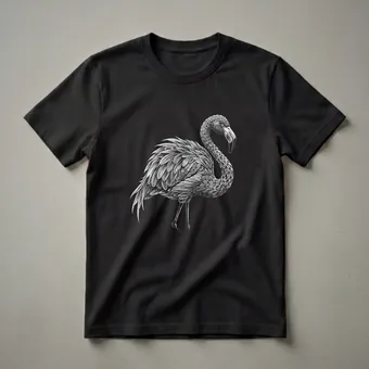 Flamingo enthusiasts will appreciate the intricate detail of this vintage-style flamingo sketch t-shirt. The artwork features a striking, monochromatic rendering of a flamingo, showcasing the delicate texture of its feathers and its distinctive curved beak. Flamingos, known for their vibrant pink plumage in their natural habitat, are depicted here in a classic sketch style, highlighting their elegant form. These birds are often found in large flocks in shallow lakes and coastal lagoons across Africa, Asia, the Americas, and the Caribbean, where they filter-feed on brine shrimp and algae. This graphic tee is a thoughtful gift for any bird watcher, wildlife artist, or someone who admires the unique beauty of these wading birds. It's a staple in the collection for anyone who enjoys nature-inspired apparel. Wear this shirt to your next nature walk or casual outing to express your passion for ornithology and fine art. This t-shirt offers a sophisticated way to display your appreciation for the natural world.