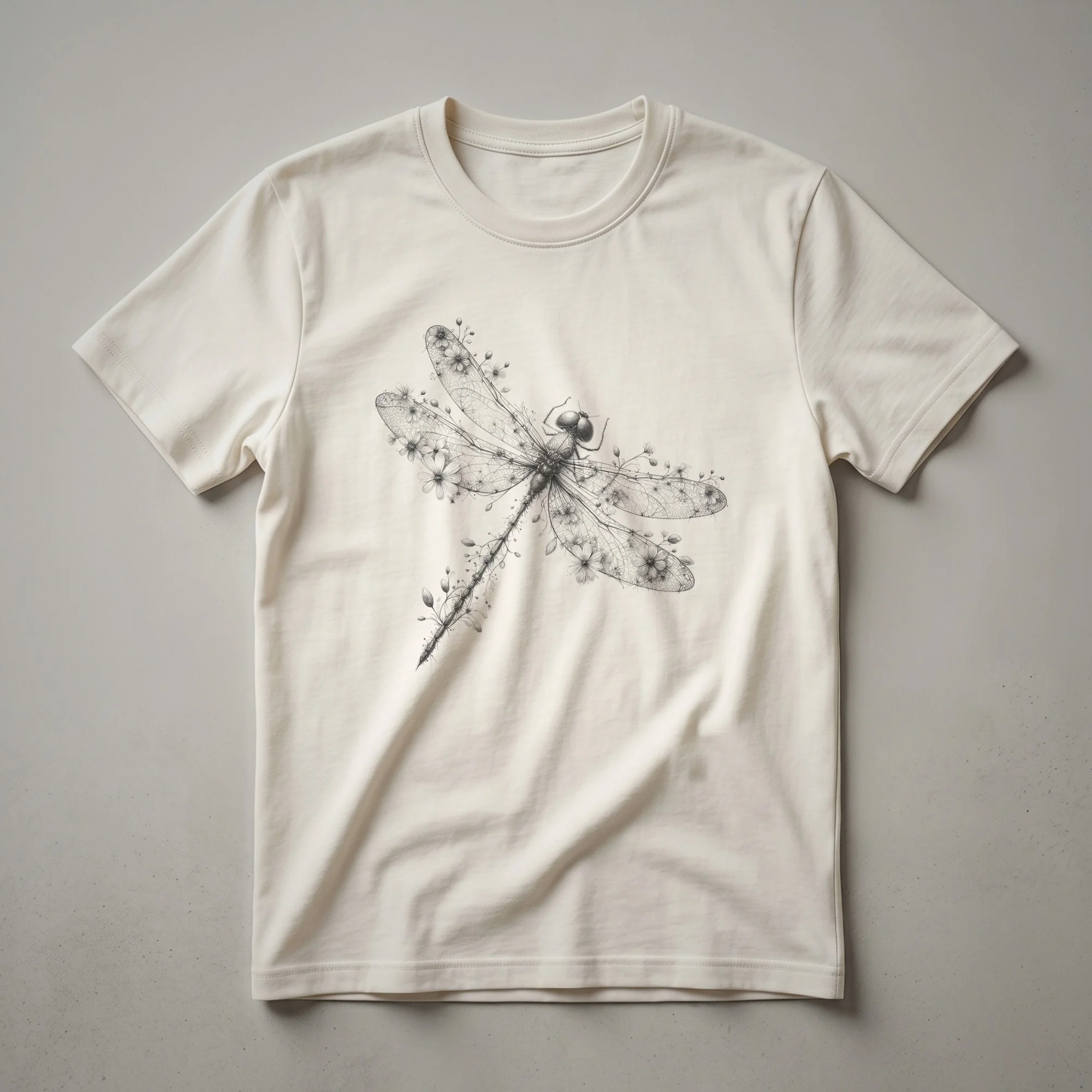 - A striking graphic t-shirt for women who love dragonflies and floral art.