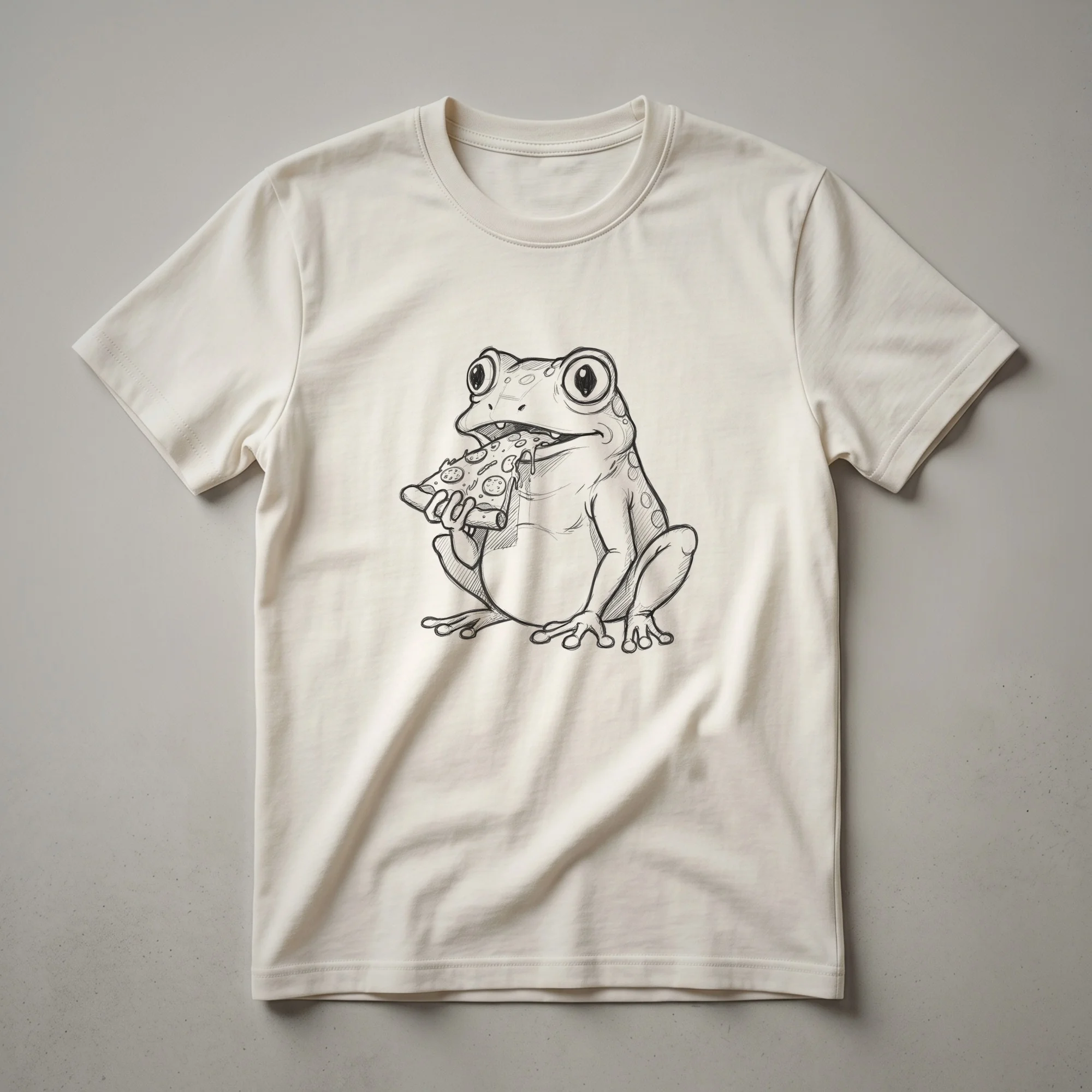 - A fun graphic t-shirt for frog lovers and pizza enthusiasts.