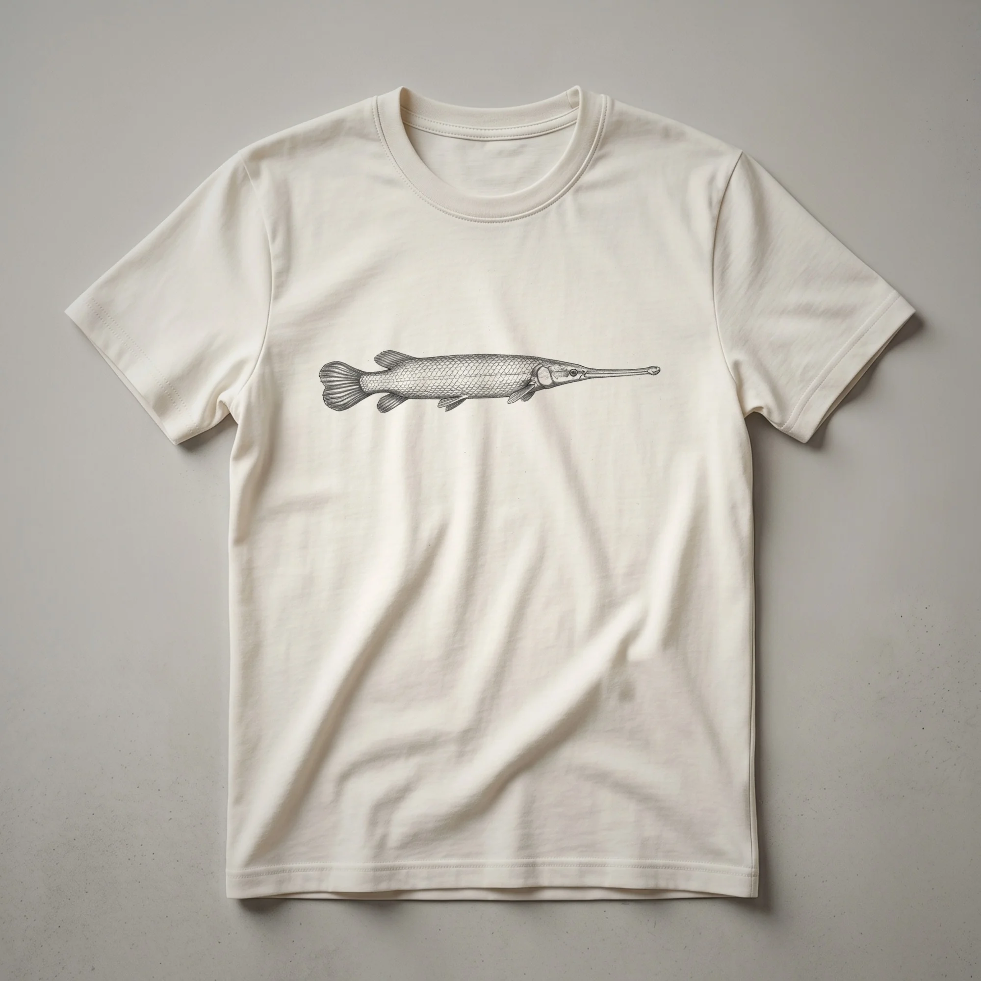 - Vintage gar drawing art t-shirt for anglers and wildlife enthusiasts.
