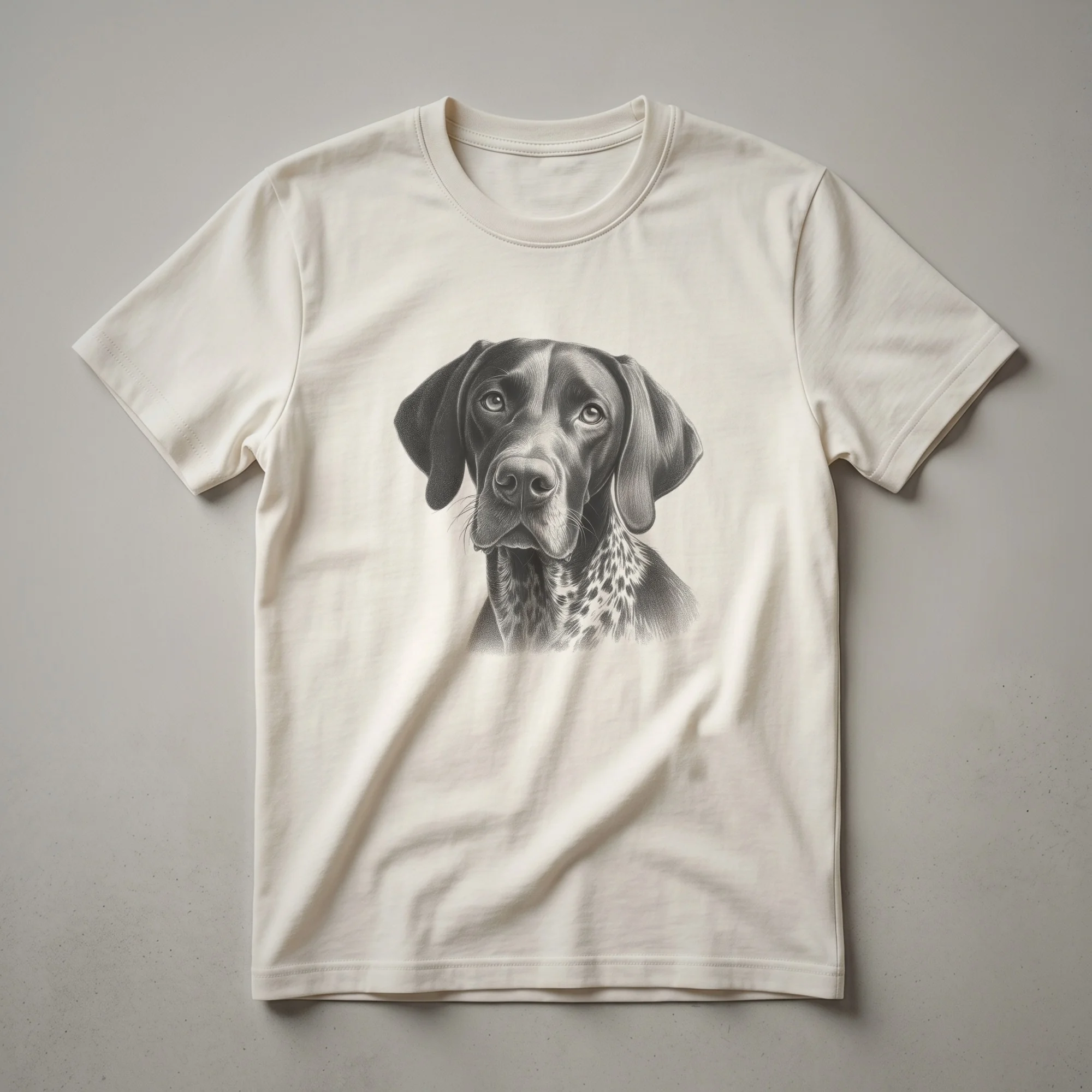 German Shorthaired Pointer owners who appreciate classic artistry will reach for this unique GSP tee. The design features a detailed, vintage-style line drawing of the breed, capturing its athletic build and alert expression. German Shorthaired Pointers, originally bred in Germany during the 19th century, are known for their versatility as hunting dogs, excelling in pointing, retrieving, and tracking. Their energetic nature and intelligence make them devoted companions. This shirt is a staple for any GSP mom or dad who wants to display their affection for their four-legged friend. It makes a thoughtful gift for birthdays, holidays, or just because for the German Shorthaired Pointer enthusiast in your life. Wear this comfortable t-shirt on walks in the park, to dog shows, or while relaxing at home with your beloved GSP. It’s a subtle yet striking way to celebrate the breed's distinctive charm and your bond with it. This graphic tee is a go-to for casual outings and everyday wear.