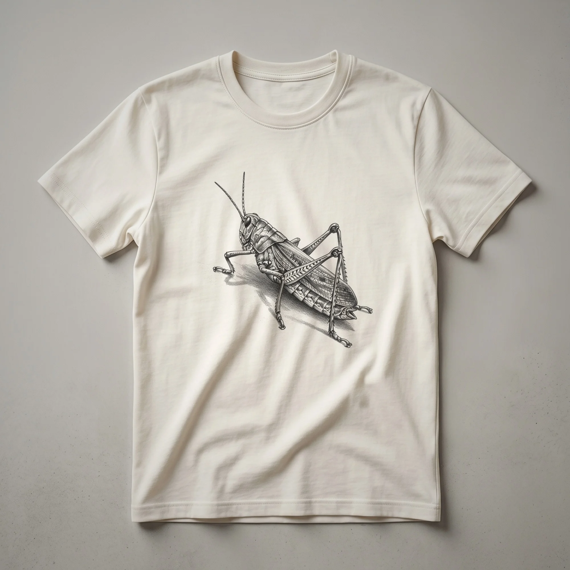 Entomology enthusiasts and lovers of vintage botanical illustrations will appreciate this striking graphic tee. The design features a detailed, black-and-white line drawing of a grasshopper, reminiscent of old-world scientific sketches. Grasshoppers, belonging to the order Orthoptera, are known for their powerful hind legs used for jumping and their distinctive chirping sounds produced by rubbing their legs together. These fascinating insects are found in diverse habitats worldwide, from lush meadows to arid deserts, playing a crucial role in ecosystems as herbivores and prey. This shirt is a thoughtful gift for anyone fascinated by the natural world, particularly those who enjoy observing insects in their environment. It's a go-to tee for casual outings, nature walks, or simply relaxing at home while celebrating a passion for the insect kingdom. Wear this unique t-shirt to express your appreciation for the intricate beauty of these common yet remarkable creatures. This apparel is a staple for any nature lover's wardrobe.