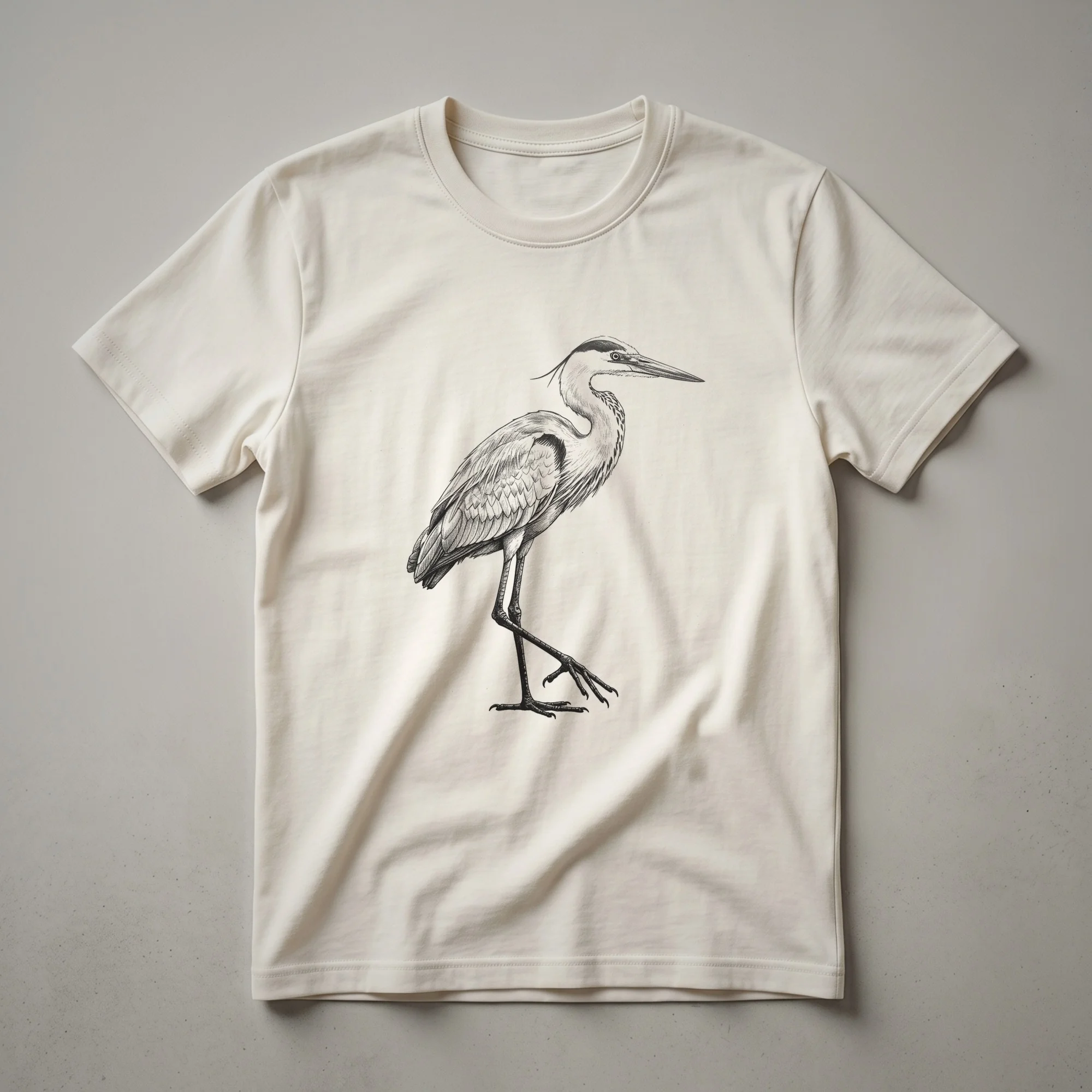 - A striking hand-drawn vintage heron graphic tee for bird enthusiasts.