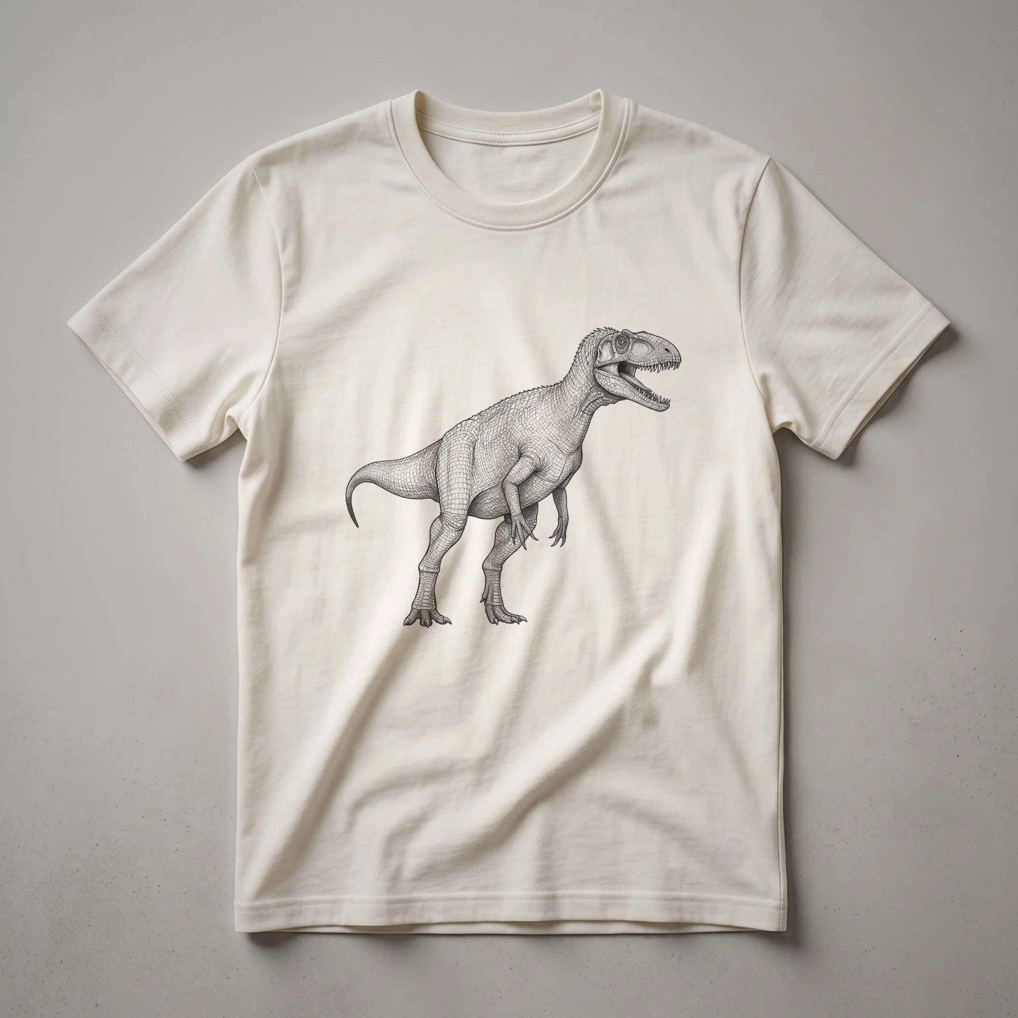 Paleontology enthusiasts and dinosaur lovers will appreciate this striking graphic tee featuring a vintage-style line drawing of a Herrerasaurus. This early theropod dinosaur roamed the Earth during the Late Triassic period, approximately 231 million years ago, making it one of the earliest known dinosaurs. The Herrerasaurus was a bipedal carnivore, estimated to be around 6 meters (20 feet) long. This shirt captures the essence of this ancient creature with a detailed, artistic rendering that evokes a sense of history and discovery. The design is presented in a classic, muted color palette, reminiscent of old scientific illustrations, making it a sophisticated addition to any wardrobe. This t-shirt works well for anyone fascinated by the Mesozoic Era or the evolution of life on Earth. It makes a thoughtful gift for the dinosaur aficionado in your life, whether they are a student of paleontology or simply enjoy the wonder of prehistoric creatures. Wear this unique shirt to a museum visit, a casual outing, or while discussing your favorite dinosaur facts.