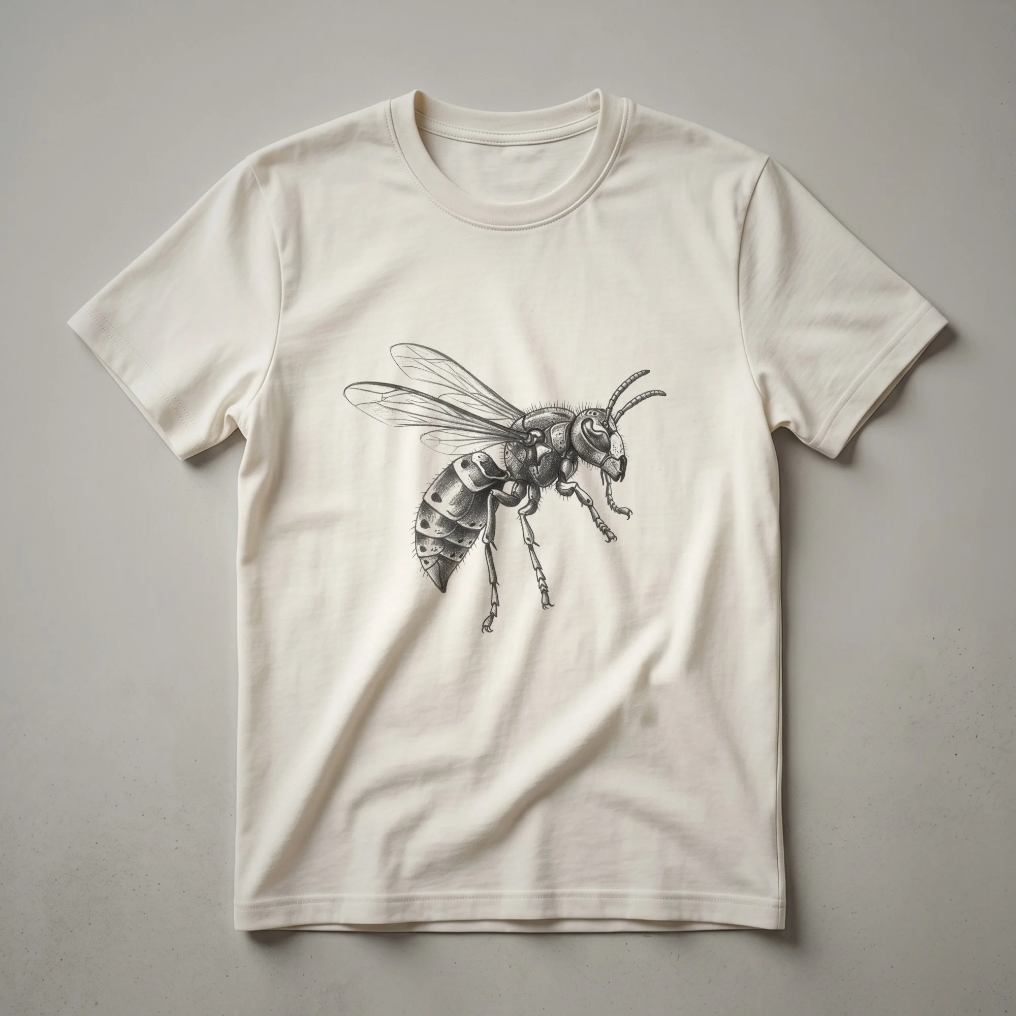 Entomology enthusiasts and lovers of vintage insect art will appreciate this striking graphic tee. The design features a detailed, vintage-style line drawing of a hornet, capturing the intricate details of its wings and segmented body. Hornets, known for their impressive size and social colony structures, are fascinating creatures often found in gardens and forests. This shirt is a thoughtful gift for anyone who admires the natural world or has a keen interest in entomology. It's a unique way to express your passion for insects, making it a go-to tee for casual outings, nature walks, or simply relaxing at home. Wear this t-shirt to spark conversations about the wonders of the insect kingdom and the beauty of scientific illustration. This apparel is a staple for those who seek distinctive designs that celebrate the natural world.