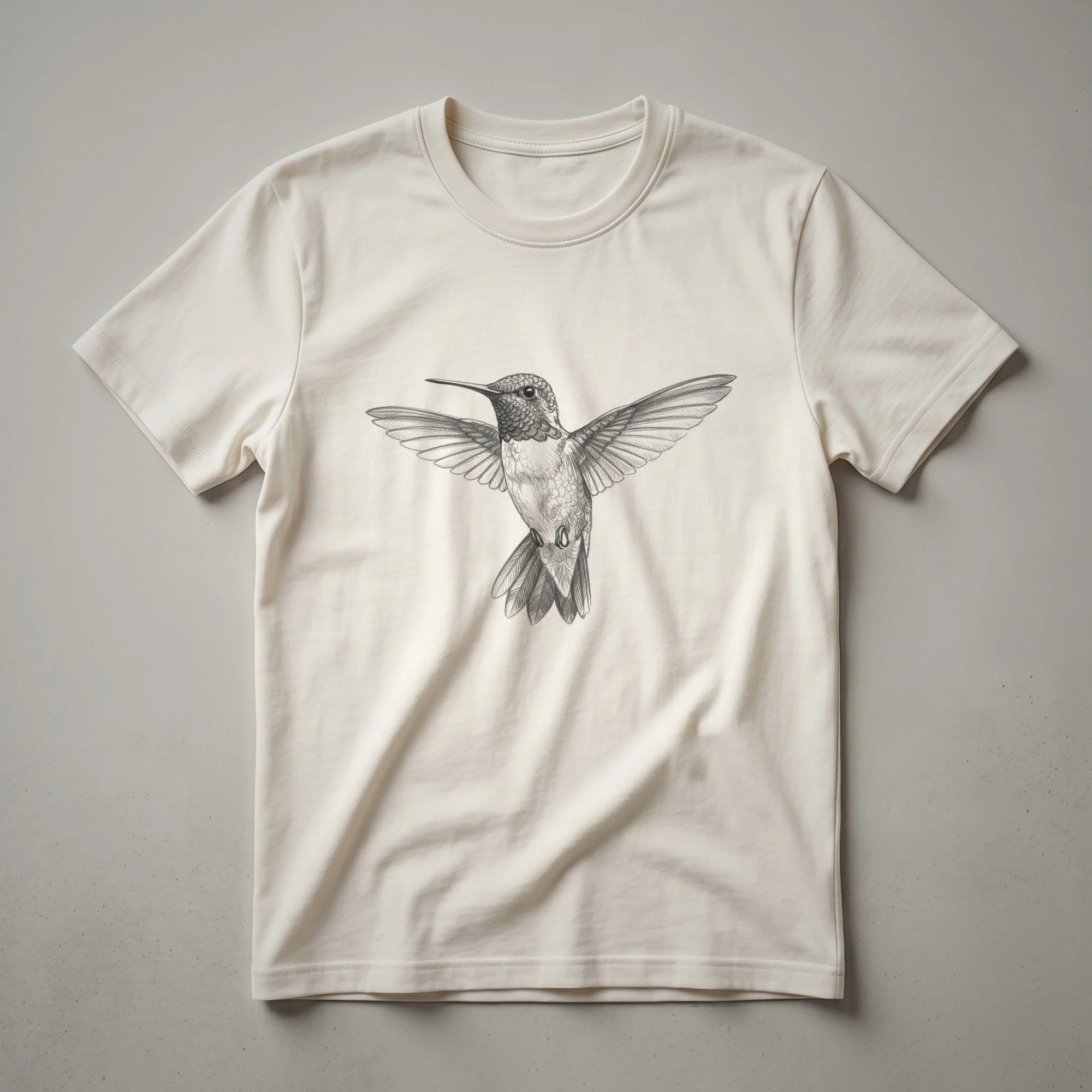 - A striking vintage hummingbird art t-shirt for bird enthusiasts.