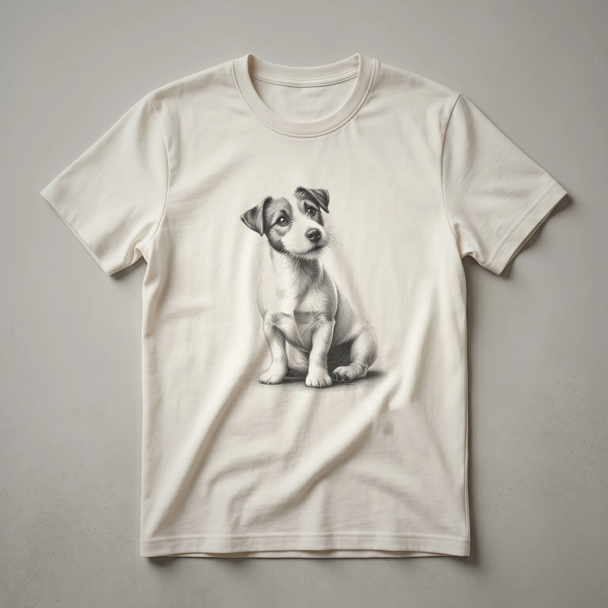Jack Russell Terrier owners who appreciate classic art will reach for this striking t-shirt. The design features a detailed pencil sketch of a young Jack Russell Terrier, capturing its alert expression and characteristic markings. This breed, originating from England, is known for its boundless energy, intelligence, and spirited personality, making them a beloved companion. This graphic tee is a wonderful way for any Jack Russell mom or dad to express their affection for their furry friend. It makes a thoughtful gift for birthdays, holidays, or just because. Wear this unique shirt to dog parks, casual outings, or while relaxing at home with your canine companion, celebrating the charm of this spirited terrier breed. This apparel is a true testament to the breed's enduring appeal.