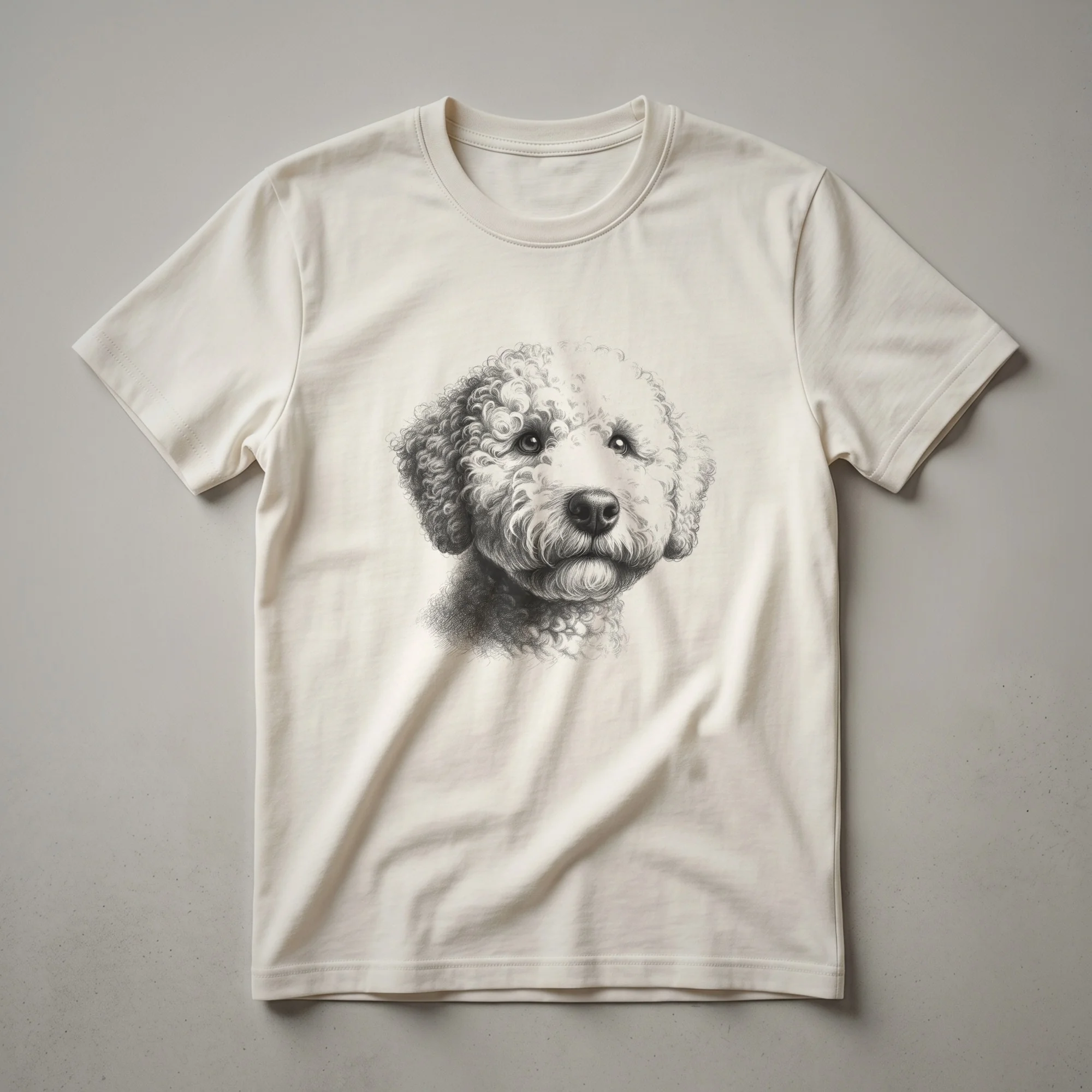 Lagotto Romagnolo owners who appreciate classic artistry will reach for this unique t-shirt. The design features a detailed, vintage-style line drawing of the distinctive curly-coated Italian water dog. Known for their intelligence and affectionate nature, Lagotto Romagnolos were originally bred in Italy as water retrievers and later became famous for truffle hunting due to their incredible sense of smell. This graphic tee captures the breed's charming appearance with a timeless aesthetic, making it a standout piece for any dog lover's wardrobe. It's a thoughtful gift for the Lagotto mom or dad who cherishes their furry companion. Wear this shirt to your next dog show, a casual outing with friends, or simply while relaxing at home with your beloved Lagotto. This comfortable tee is a subtle yet stylish way to celebrate the breed's heritage and your personal connection to these wonderful dogs. The artistic rendering makes this shirt a conversation starter among fellow dog enthusiasts.