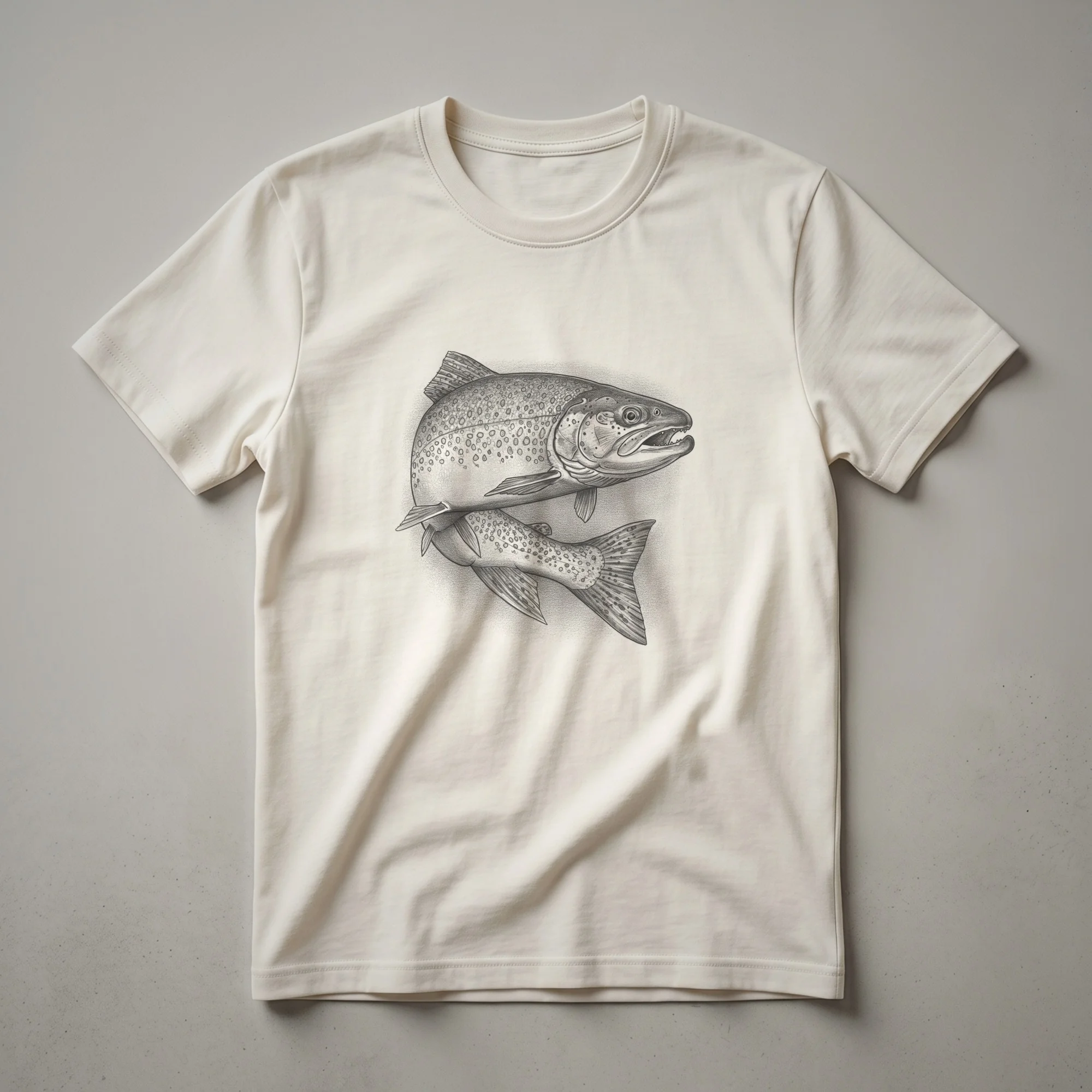 Anglers who appreciate the art of fishing will reach for this vintage lake trout drawing tee. The design features a detailed, classic illustration of a Salvelinus namaycush, commonly known as the lake trout. This species is a large freshwater fish native to North America, found in deep, cold lakes and rivers, particularly in Canada and the northern United States. Lake trout are prized by sport fishermen for their size and fighting spirit, often inhabiting vast bodies of water like the Great Lakes. This shirt captures the timeless appeal of the sport with its retro aesthetic. It's a staple in the collection for anyone who enjoys casting a line or simply admires the beauty of freshwater game fish. This graphic tee makes a thoughtful gift for the fisherman in your life, whether for a birthday or just because. Wear it on your next fishing trip or to your favorite casual outing to showcase your love for the great outdoors and the thrill of the catch. This comfortable t-shirt is a go-to for any fishing enthusiast.