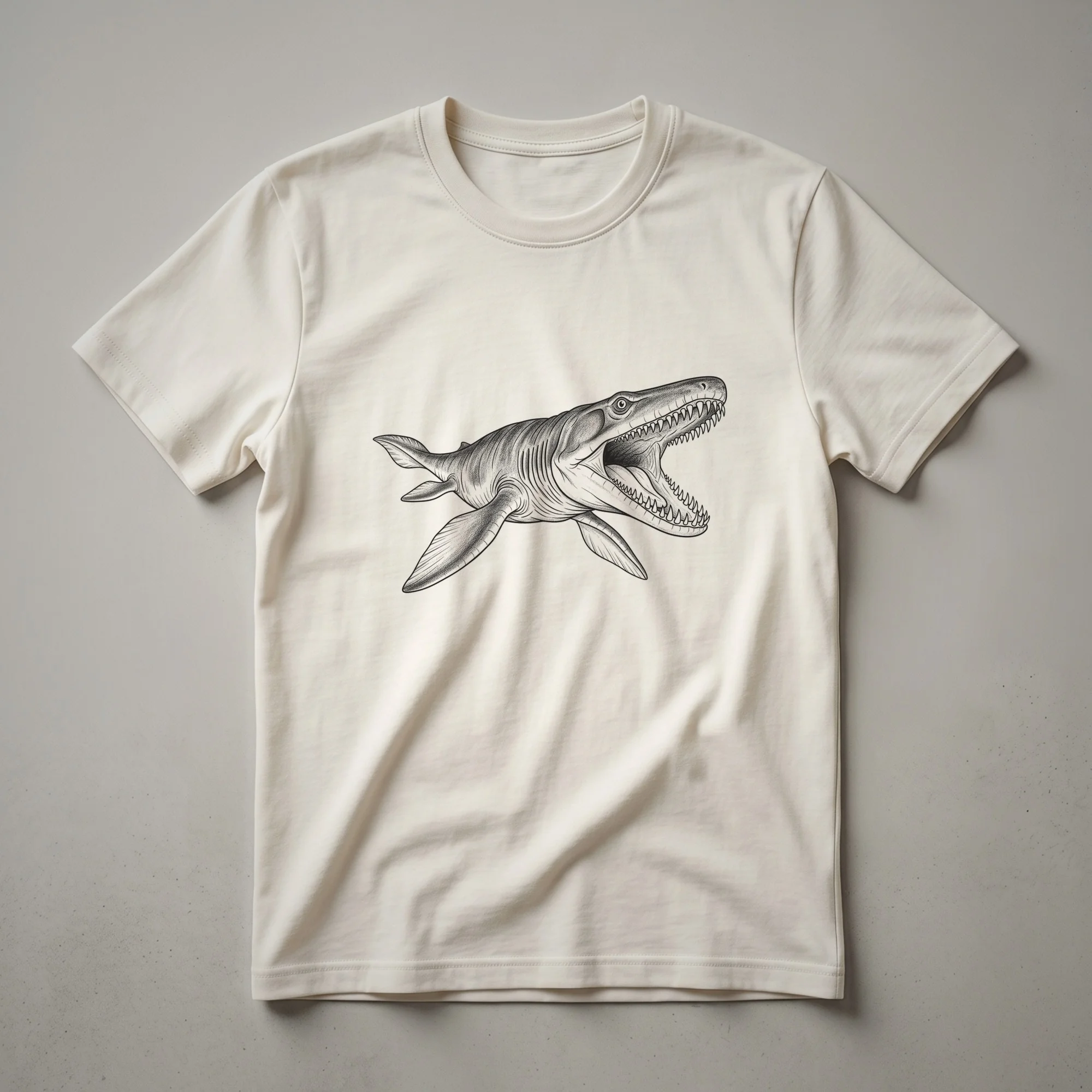 Paleontology enthusiasts and lovers of ancient marine life will appreciate this striking graphic tee featuring a vintage-style drawing of a Liopleurodon. This extinct marine reptile, a large pliosaur, roamed the oceans during the Jurassic period, estimated to have lived between 160 and 155 million years ago. The detailed illustration captures the formidable appearance of this apex predator, showcasing its powerful jaws and streamlined body, reminiscent of scientific illustrations from a bygone era. This shirt is a thoughtful gift for anyone fascinated by dinosaurs and prehistoric creatures, or for those who enjoy unique, historically inspired apparel. It's a conversation starter, great to wear to museums, educational events, or casual outings where you want to display your interest in Earth's ancient past. The Liopleurodon's habitat was the vast, open oceans, where it likely hunted other marine reptiles and large fish, making it a true titan of its time. This t-shirt offers a glimpse into that lost world, rendered in a classic artistic style that appeals to both science buffs and art aficionados. Add this distinctive piece to your collection and wear your passion for prehistoric giants.