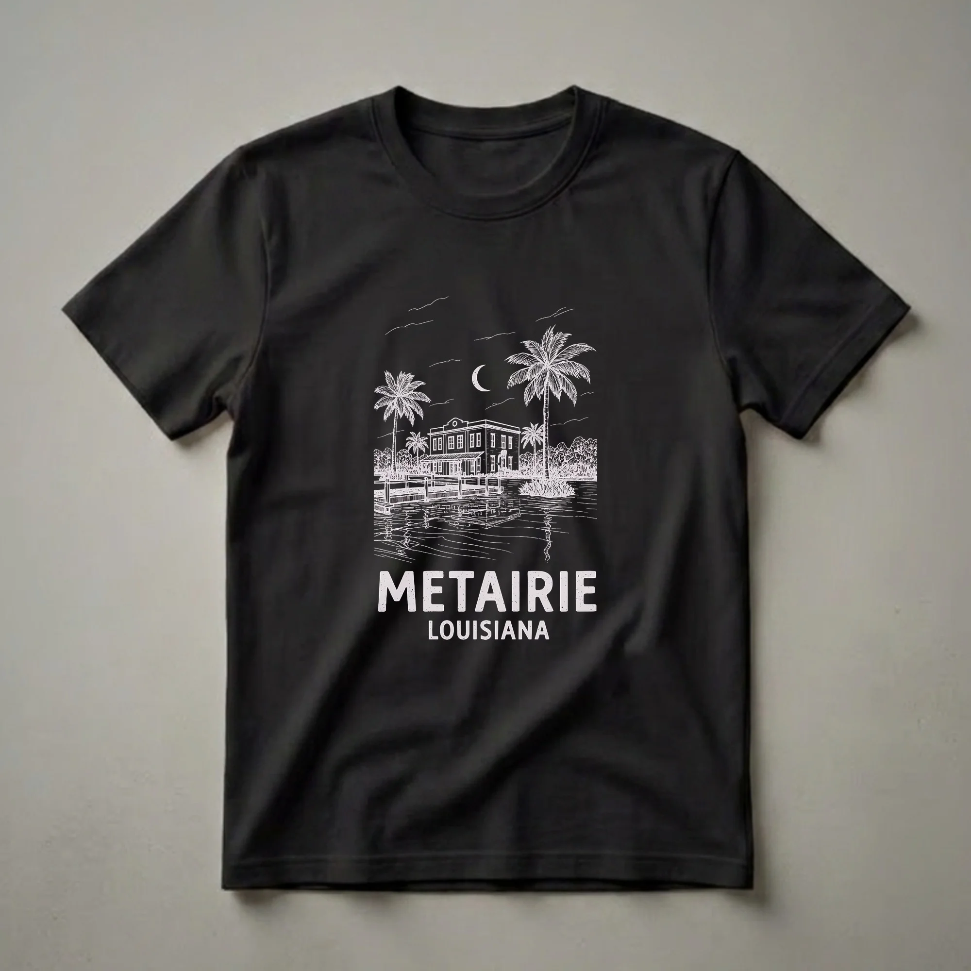 - Metairie, Louisiana night scene graphic tee for residents and fans.