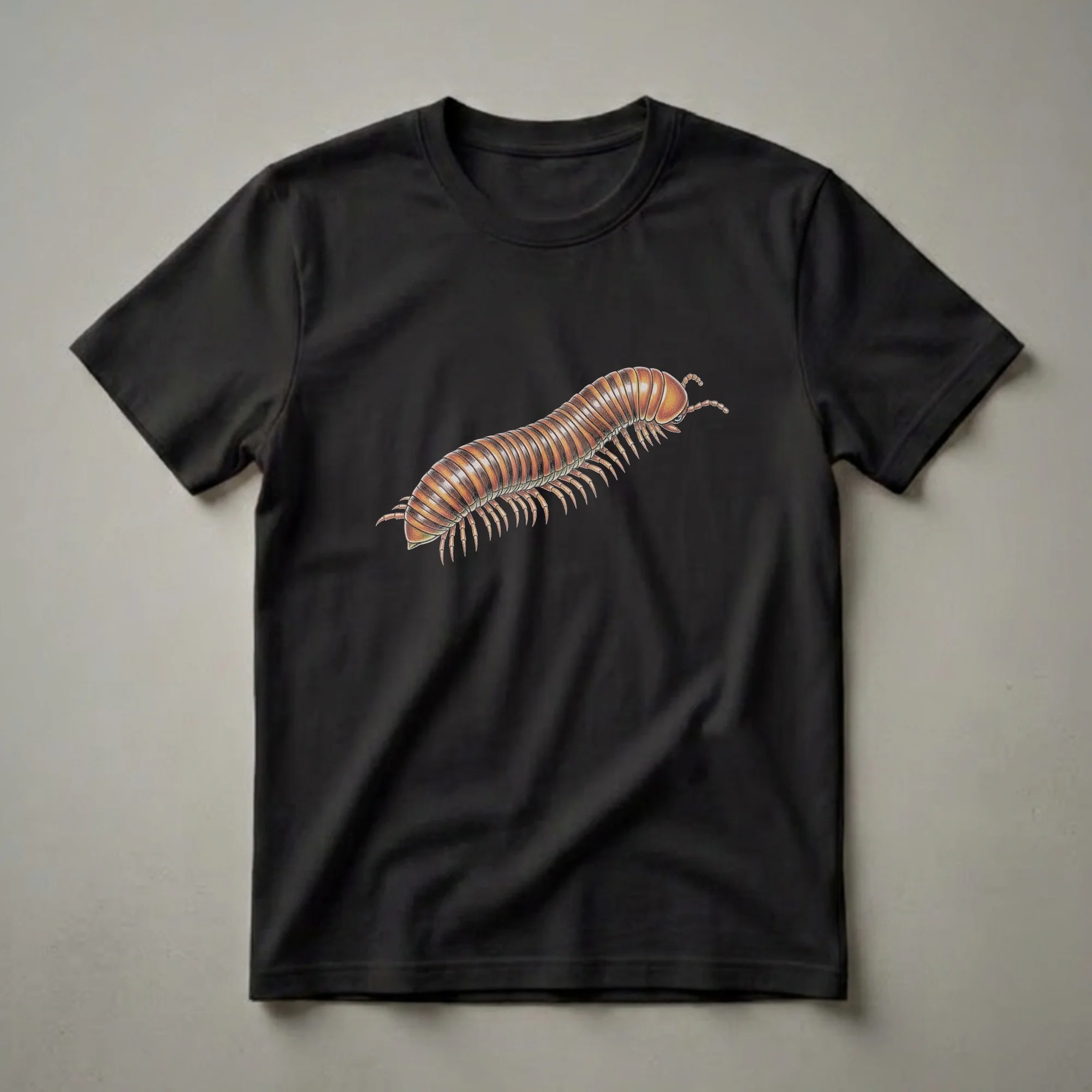 - A detailed millipede drawing t-shirt for invertebrate enthusiasts.