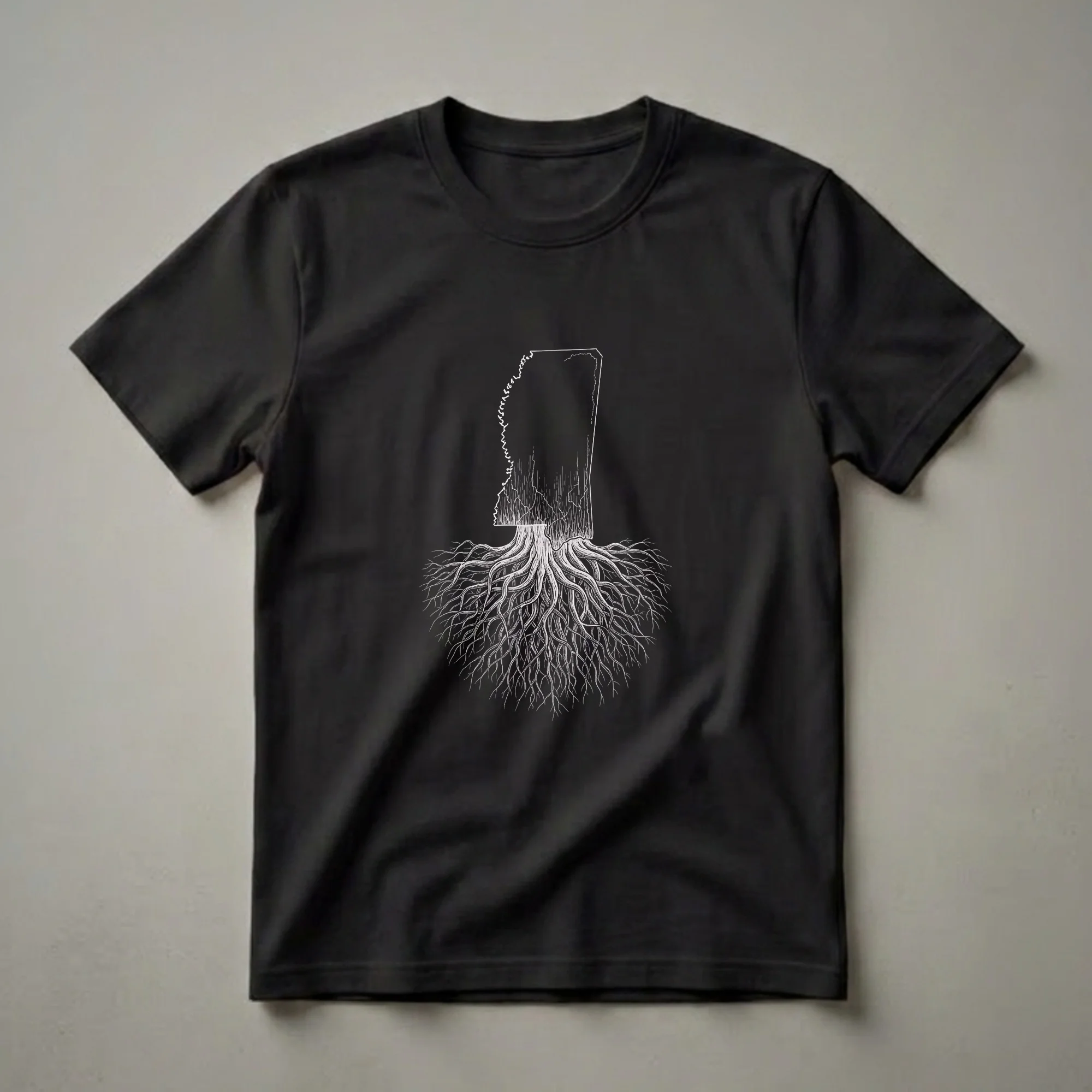 Mississippi natives and those with deep connections to the Magnolia State will appreciate this striking graphic tee. The design features a detailed outline of Mississippi, rendered in a vintage line art style. From the base of the state shape, a complex network of tree roots spreads outwards, symbolizing heritage, growth, and belonging. Mississippi, known for its rich cultural history and the mighty Mississippi River that forms its western border, is a state with a strong sense of identity. This shirt serves as a visual representation of that connection, a thoughtful choice for anyone who calls Mississippi home or holds it dear. Whether you're a lifelong resident or have family ties, this t-shirt is a thoughtful gift idea for birthdays, holidays, or just because. Wear it to local festivals, family gatherings, or casual outings to showcase your state pride. This unique apparel is a conversation starter for fellow Mississippians and a way to share your roots with others. It's a staple in any collection celebrating state pride.
