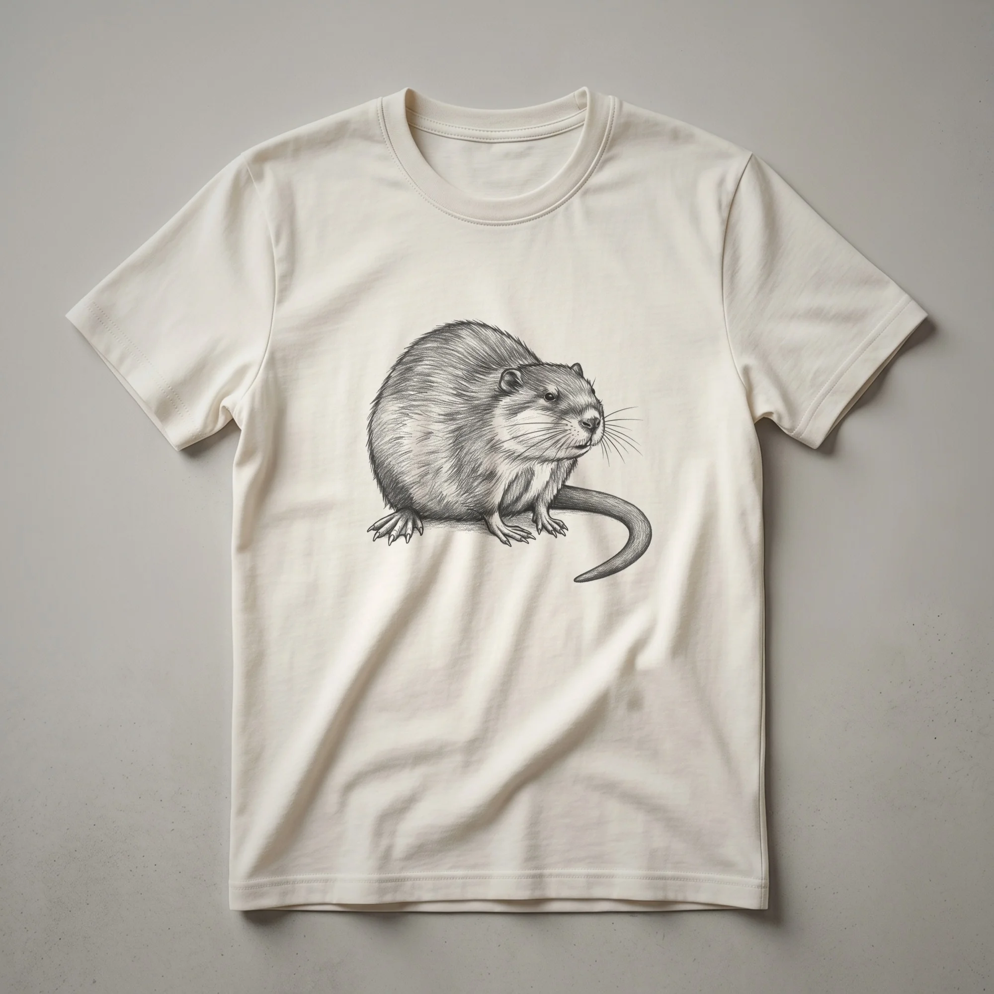 Wildlife enthusiasts and nature lovers will appreciate the detailed artistry of this vintage muskrat drawing t-shirt. The design features a meticulously rendered muskrat, captured in a classic line art style that evokes a sense of natural history and appreciation for the wild. Muskrats, semi-aquatic rodents native to North America, are known for their industrious dam-building and their role in wetland ecosystems. They are often found near rivers, lakes, and marshes, where they forage for aquatic vegetation and build lodges. This graphic tee is a thoughtful gift for anyone who enjoys observing wildlife, hiking through natural landscapes, or simply has a deep admiration for the animal kingdom. The striking illustration makes this shirt a conversation starter, whether you're out on a trail or enjoying a casual day out. This t-shirt is a staple for those who connect with the natural world and want to wear their passion. It's a unique way to express an interest in zoology and the fascinating creatures that inhabit our planet's waterways. Wear it to your next nature walk or outdoor gathering.